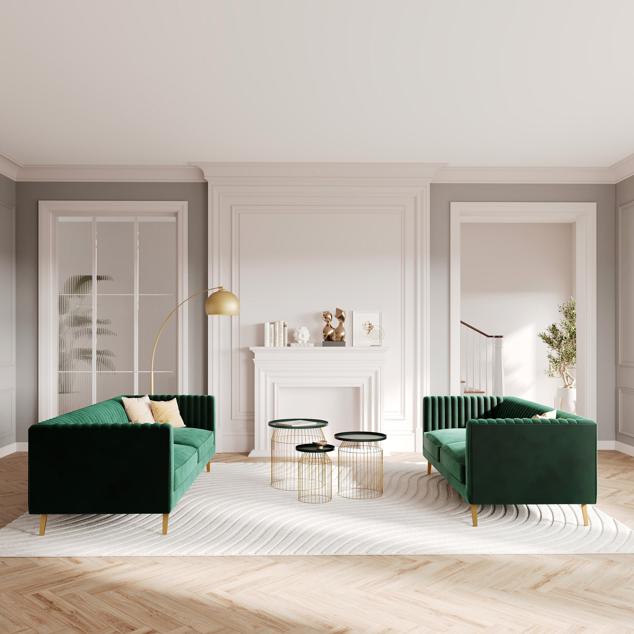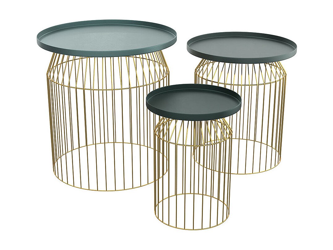 Tables d'appoints rondes en métal bleu gris et laiton (lot de 3) - Palombe
