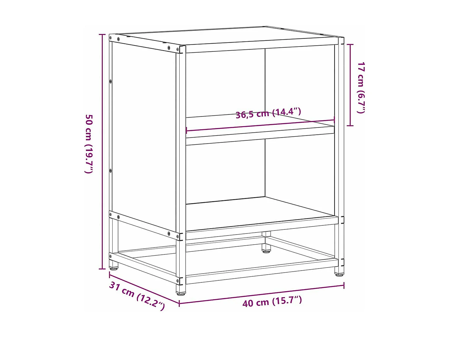 Table de chevet chêne marron 40x31x50cm bois d'ingénierie métal