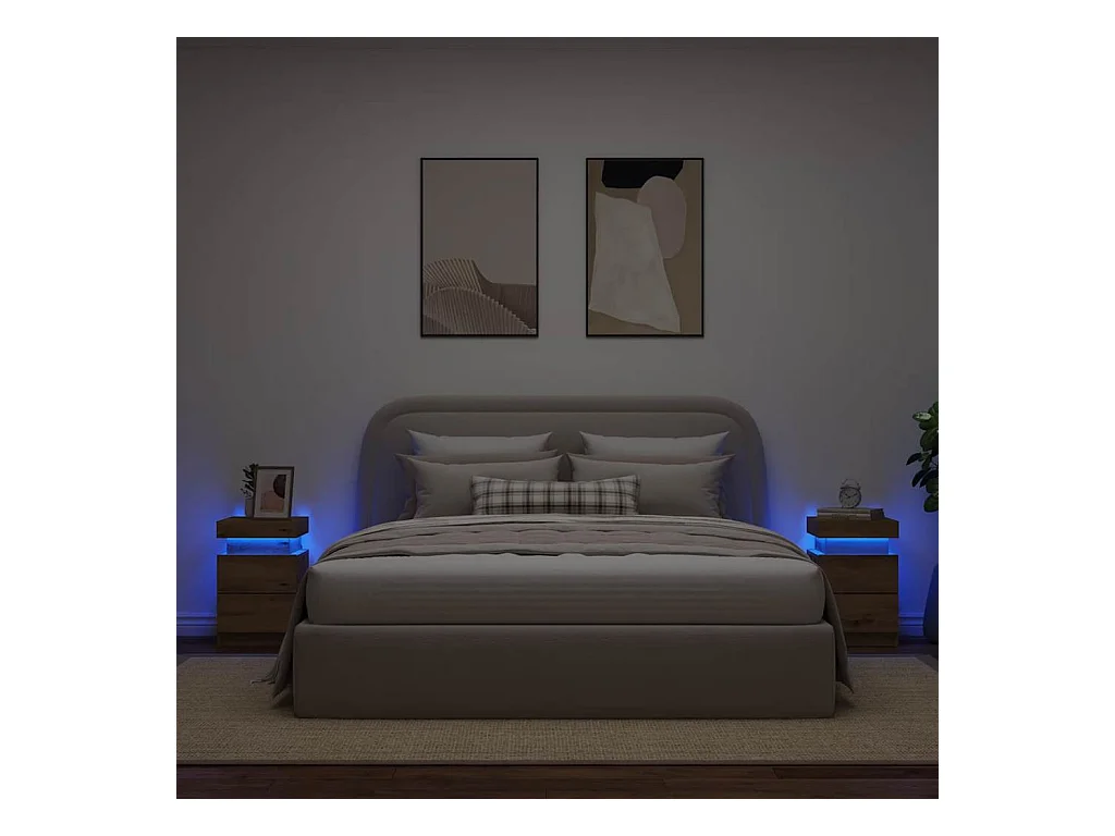 Tables de chevet avec LED 2 pcs chêne artisanal bois ingénierie