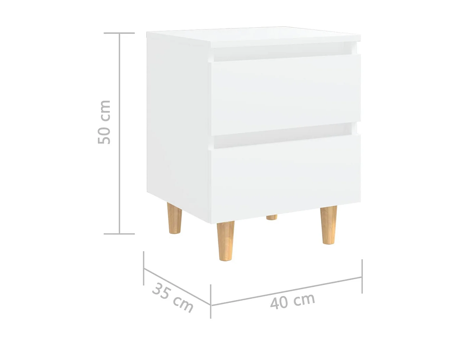 Tables de chevet avec pieds en pin 2 pièces Blanc 40x35x50 cm
