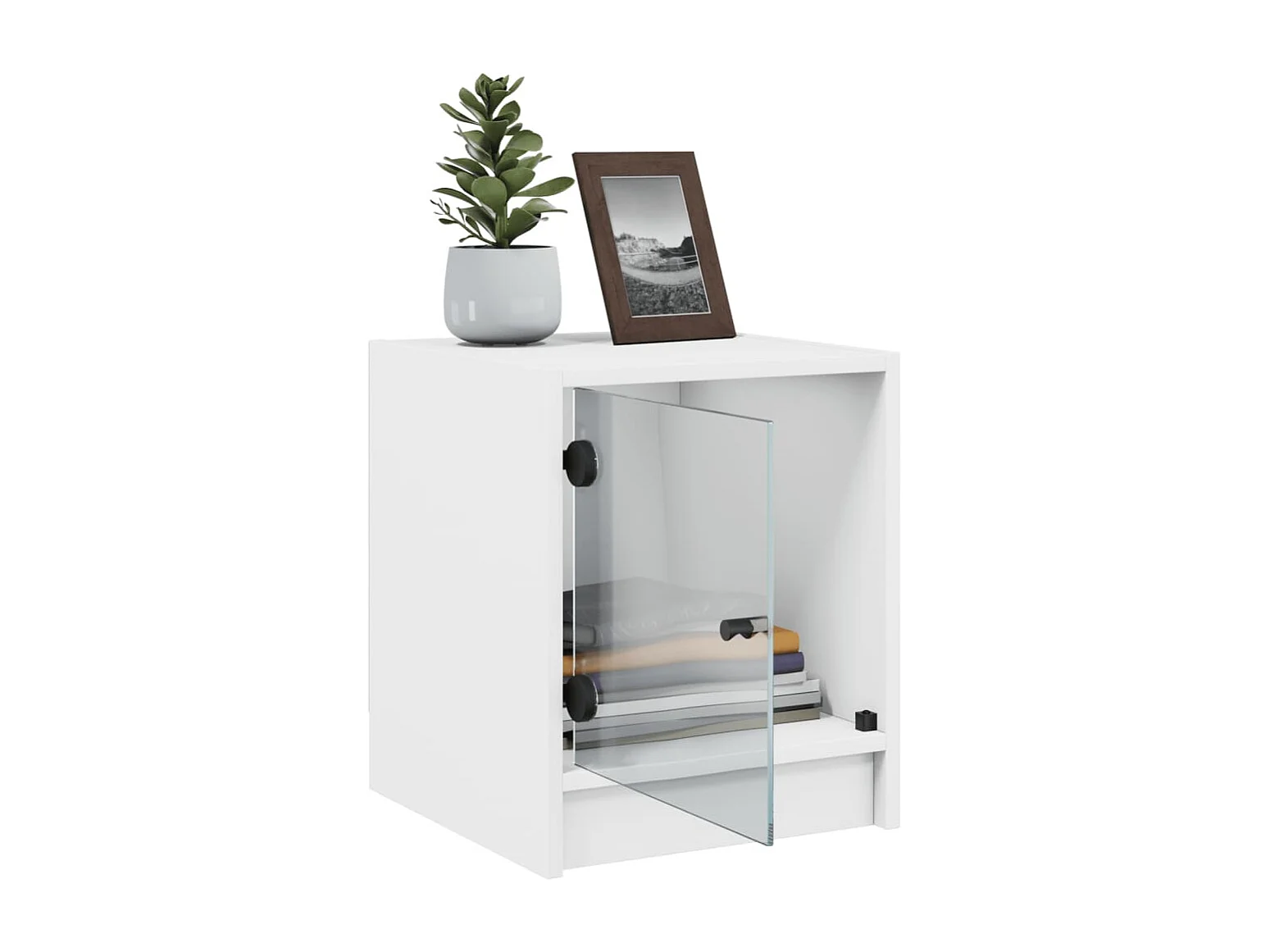 Tables de chevet avec portes en verre 2 pcs blanc 35x37x35