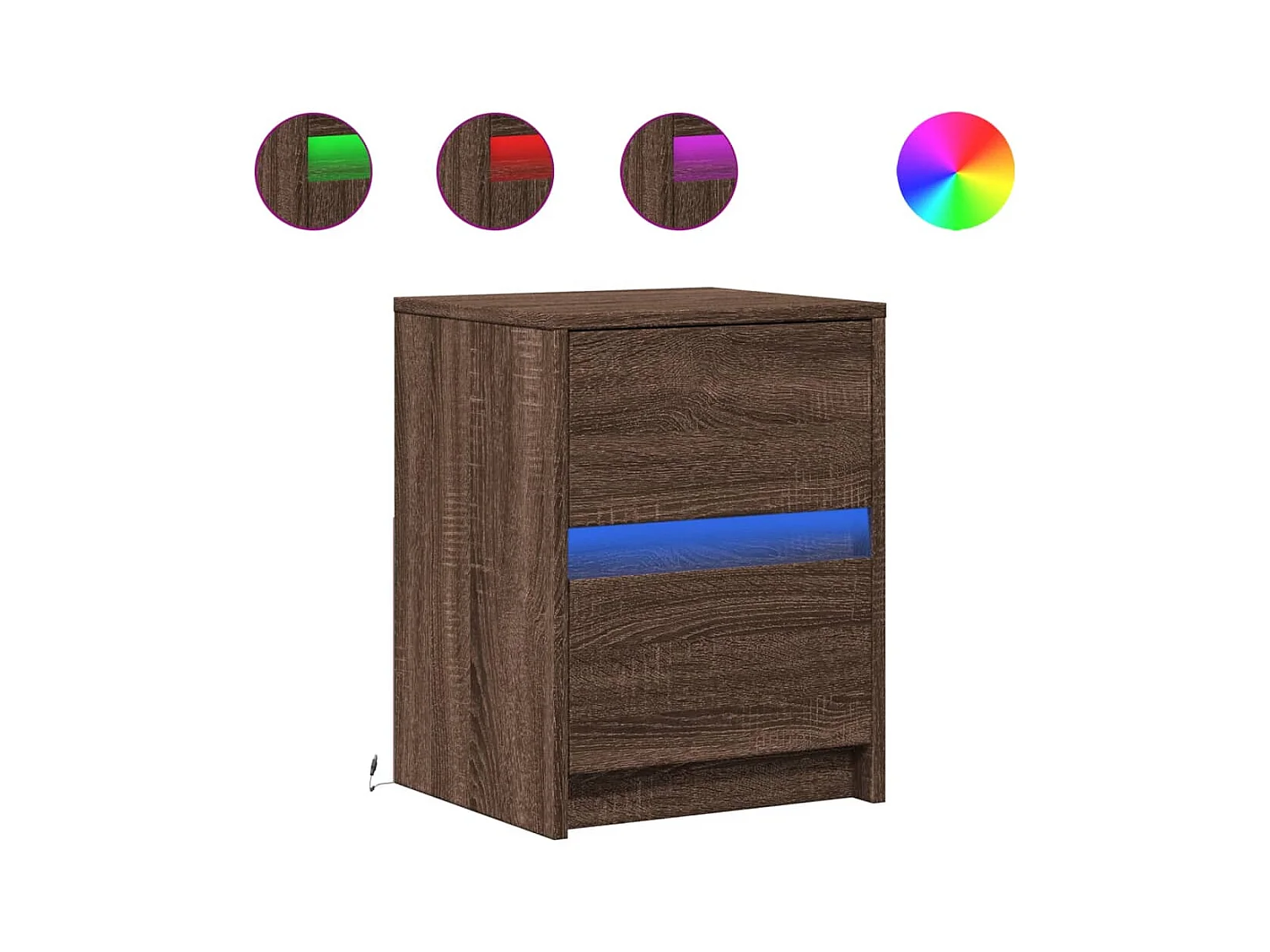 Table de chevet avec lumières LED chêne marron 38x34x50 cm