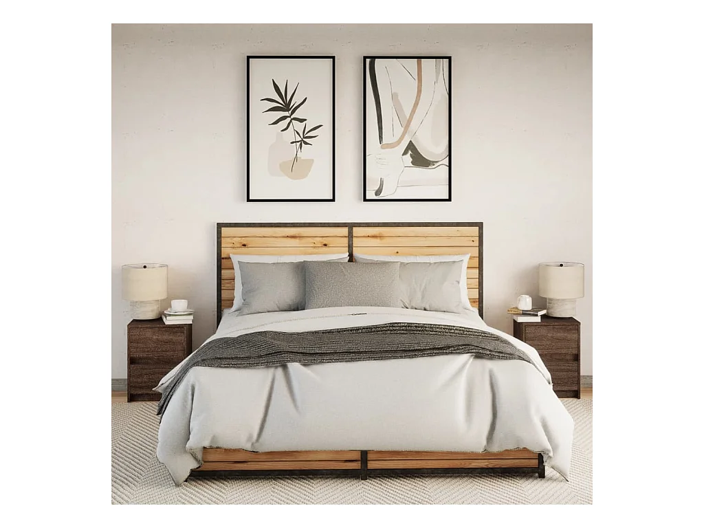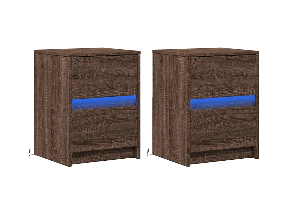 Tables de chevet et lumières LED 2 pièces chêne marron