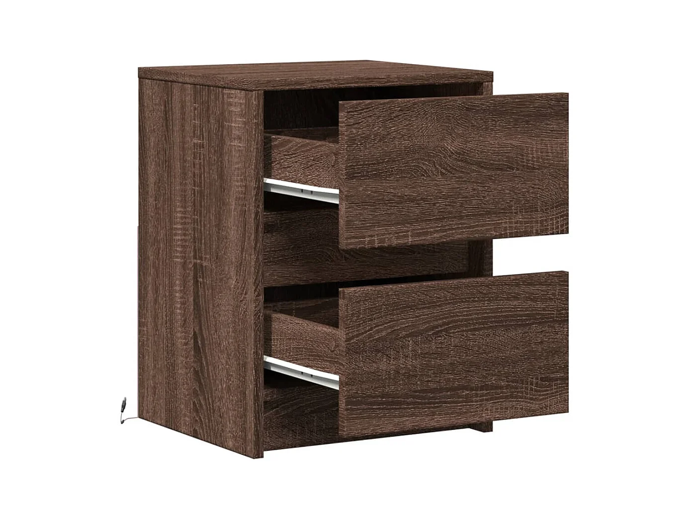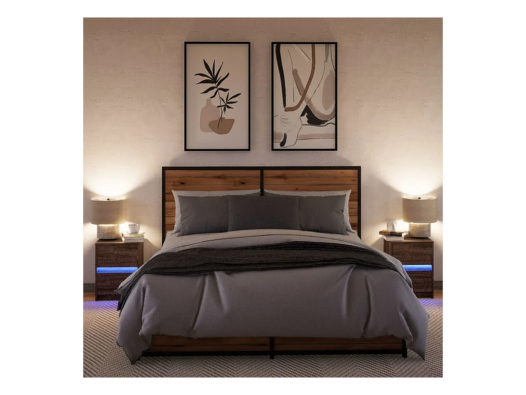 Table de chevet et lumières LED chêne marron bois ingénierie