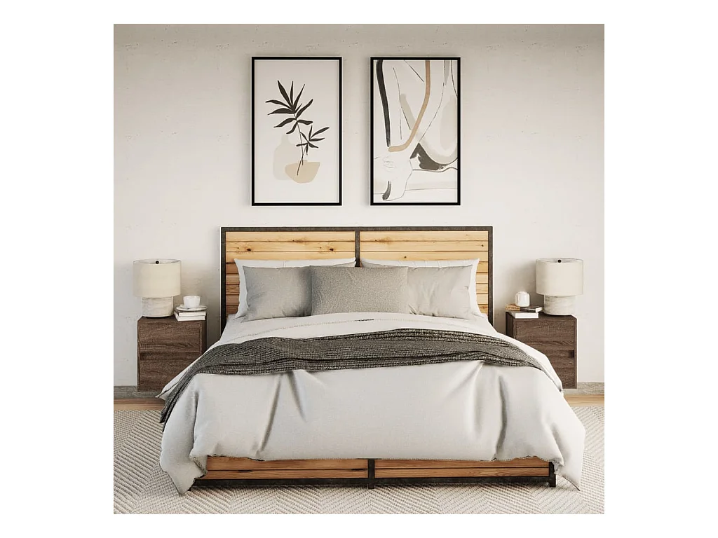 Tables de chevet murales avec lumières LED 2 pcs chêne marron