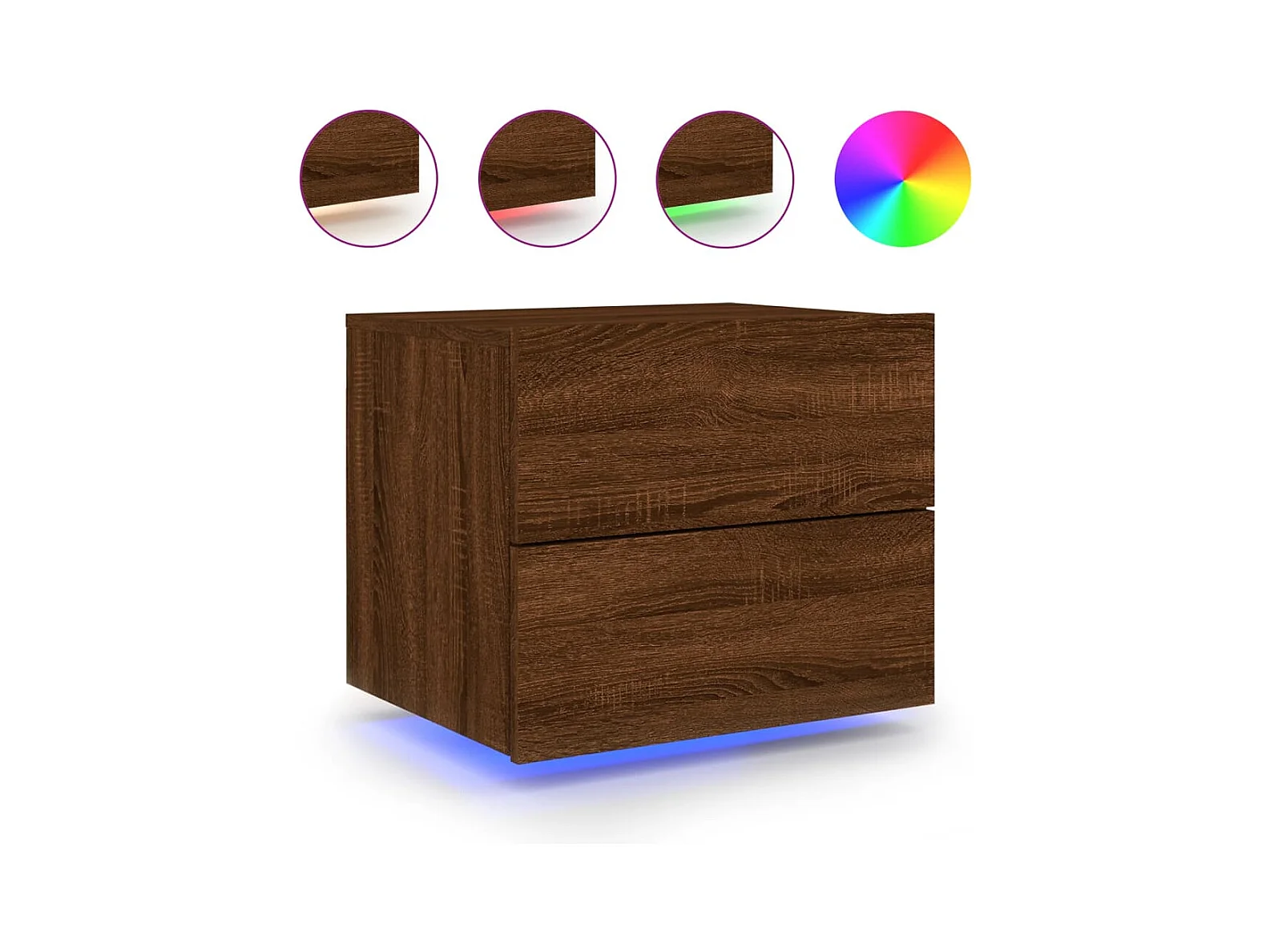 Table de chevet murale avec lumières LED chêne marron