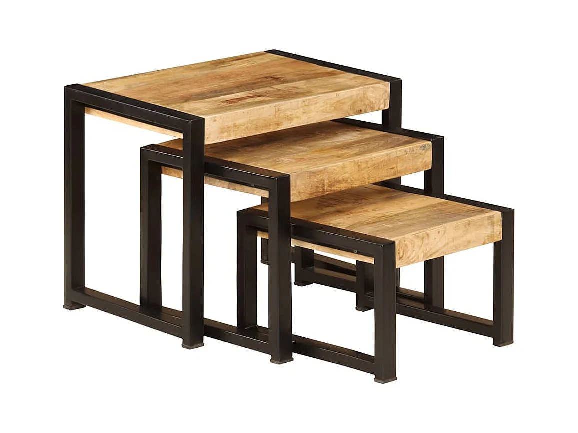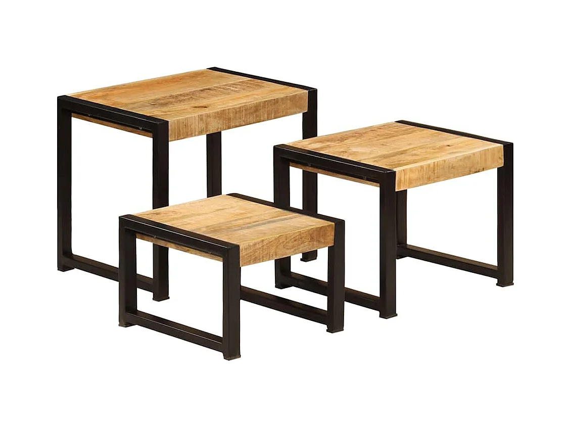 Ensemble de tables gigognes 3 pcs bois d'acajou massif