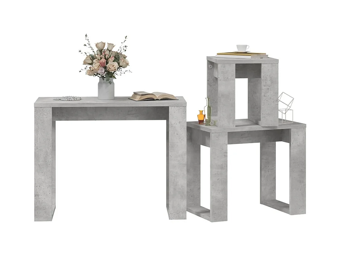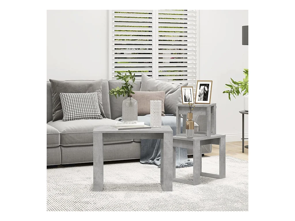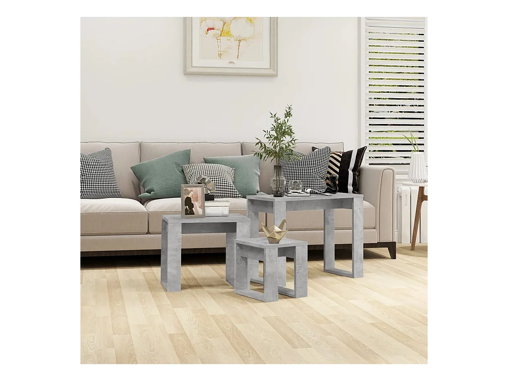Tables gigognes 3 pcs Gris béton Bois d'ingénierie