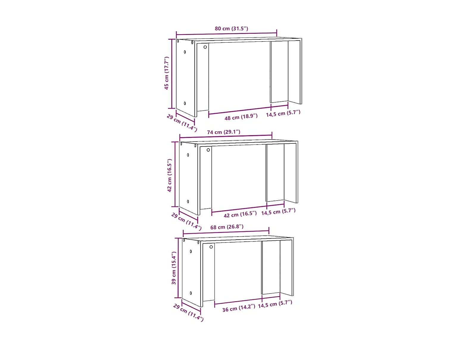 Tables gigognes 3 pcs noir bois d'ingénierie