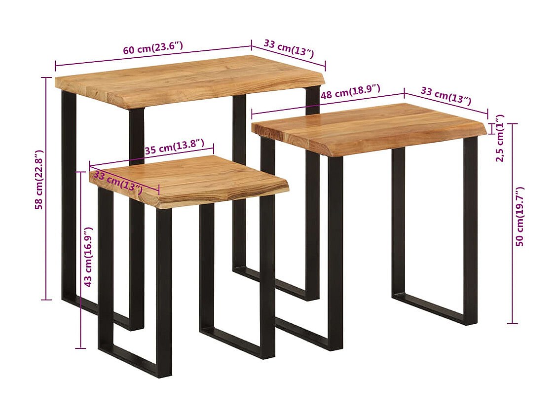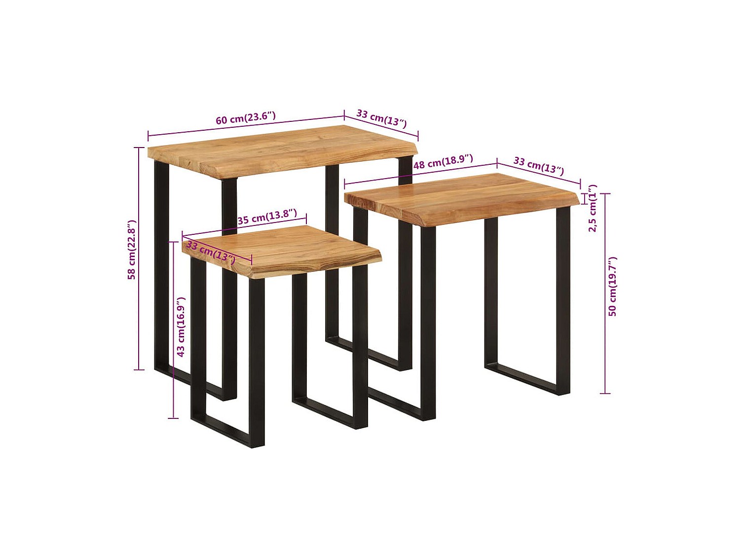 Tables gigognes 3 pcs avec bord vivant bois massif d'acacia