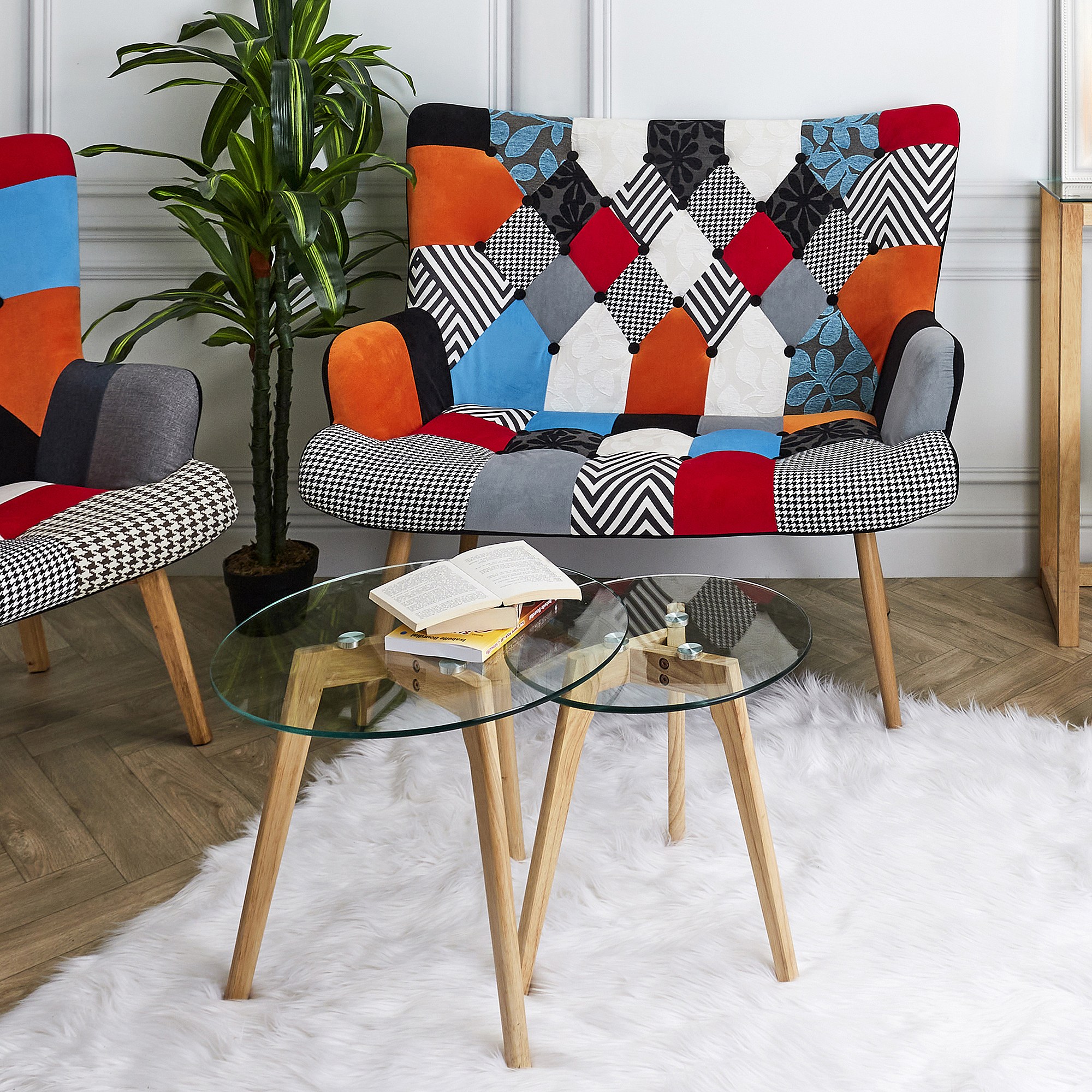 Tables basses rondes en verre et bois d'hévéa (lot de 2) - Vénus