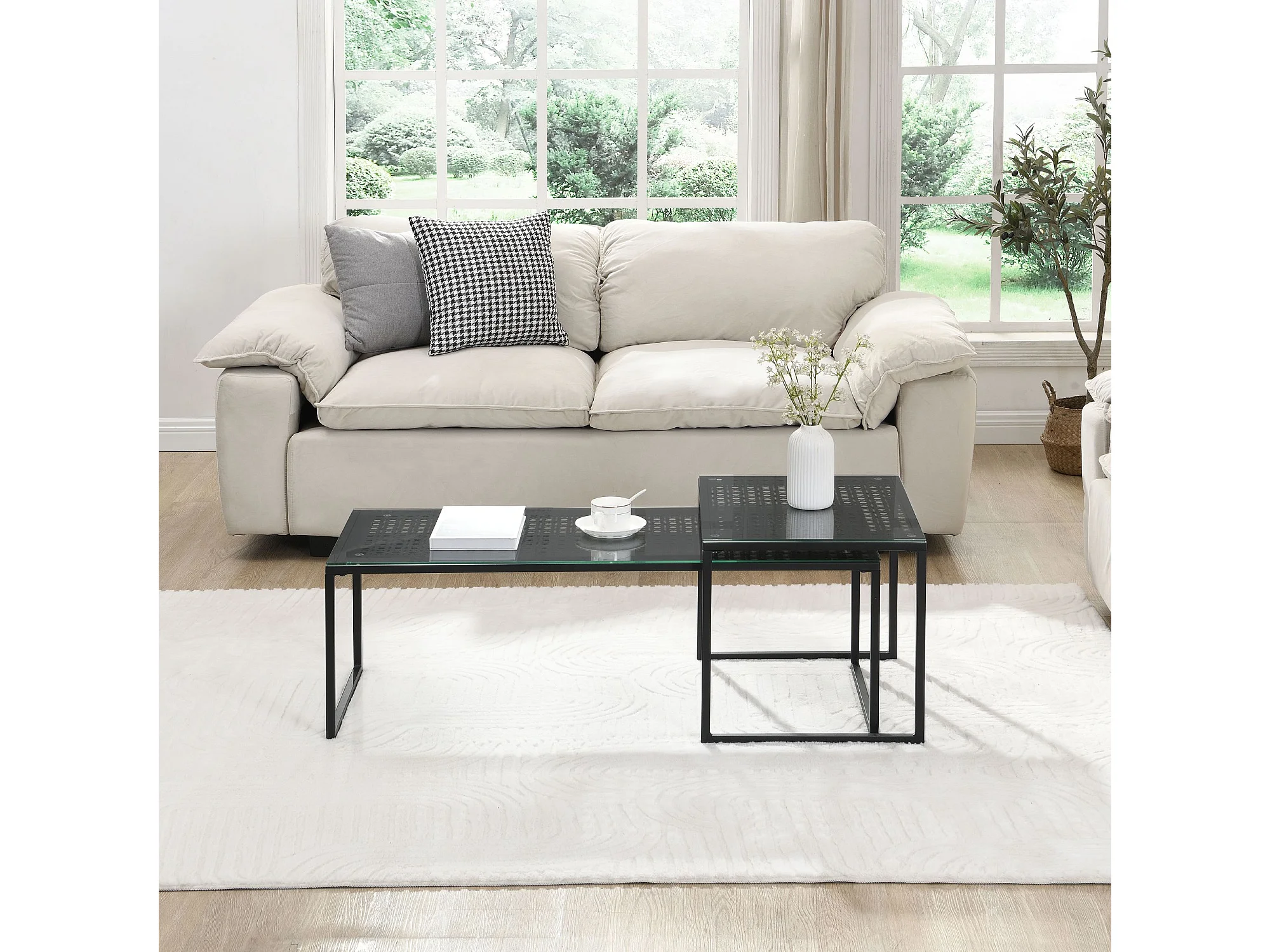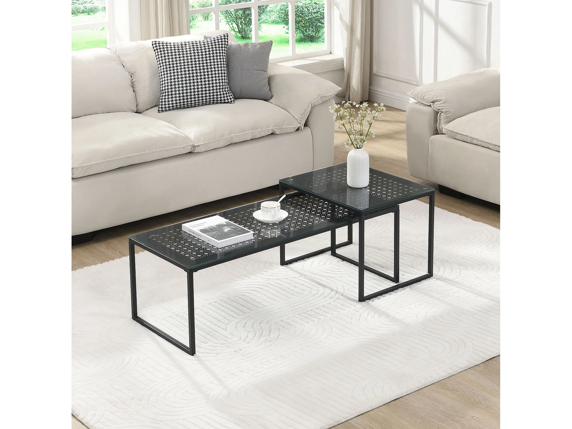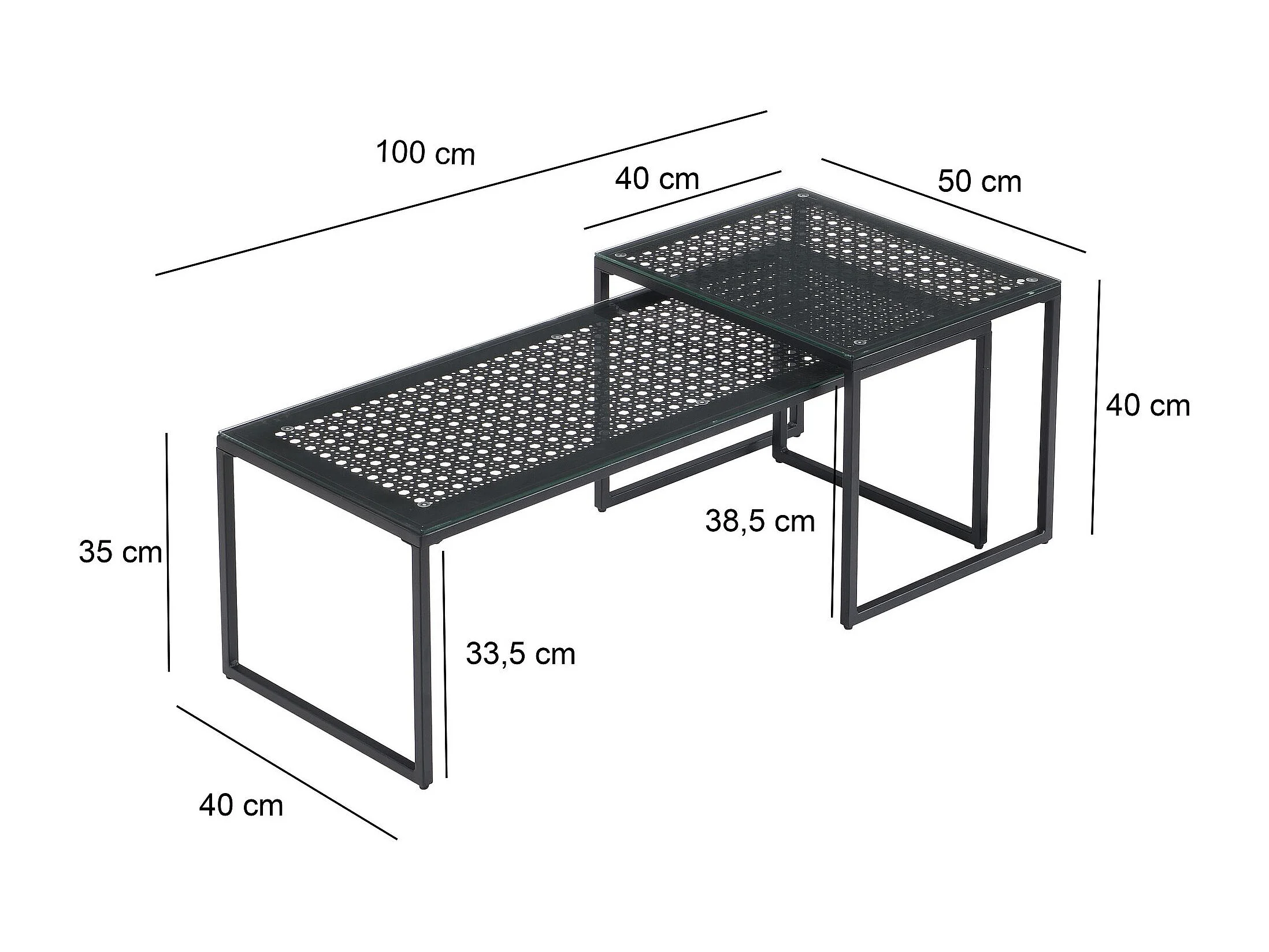 Tables gigognes, lot de 2, verre en métal, table basse, table de canapé