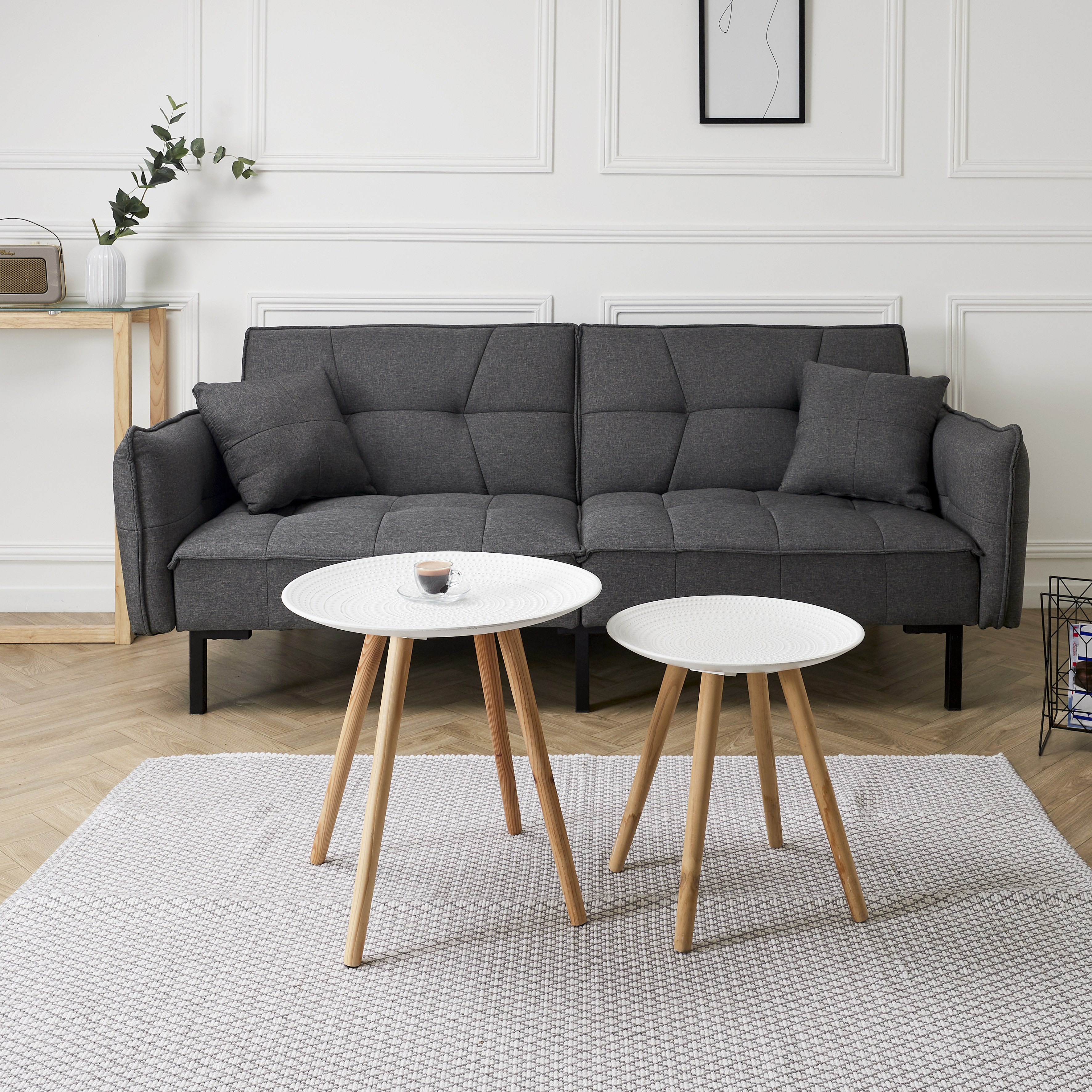 TANIA - Tables Gigognes Blanches Motif Gouttelettes