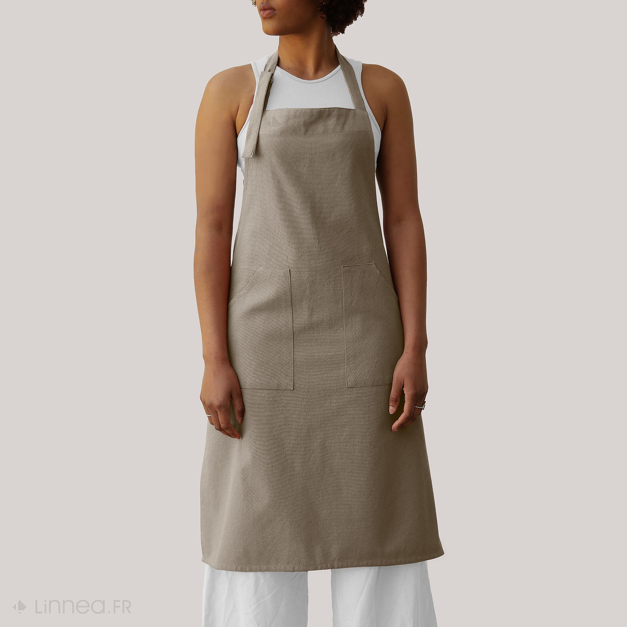 Tablier de cuisine double poche 70x90 cm coton HONO beige Chanvre