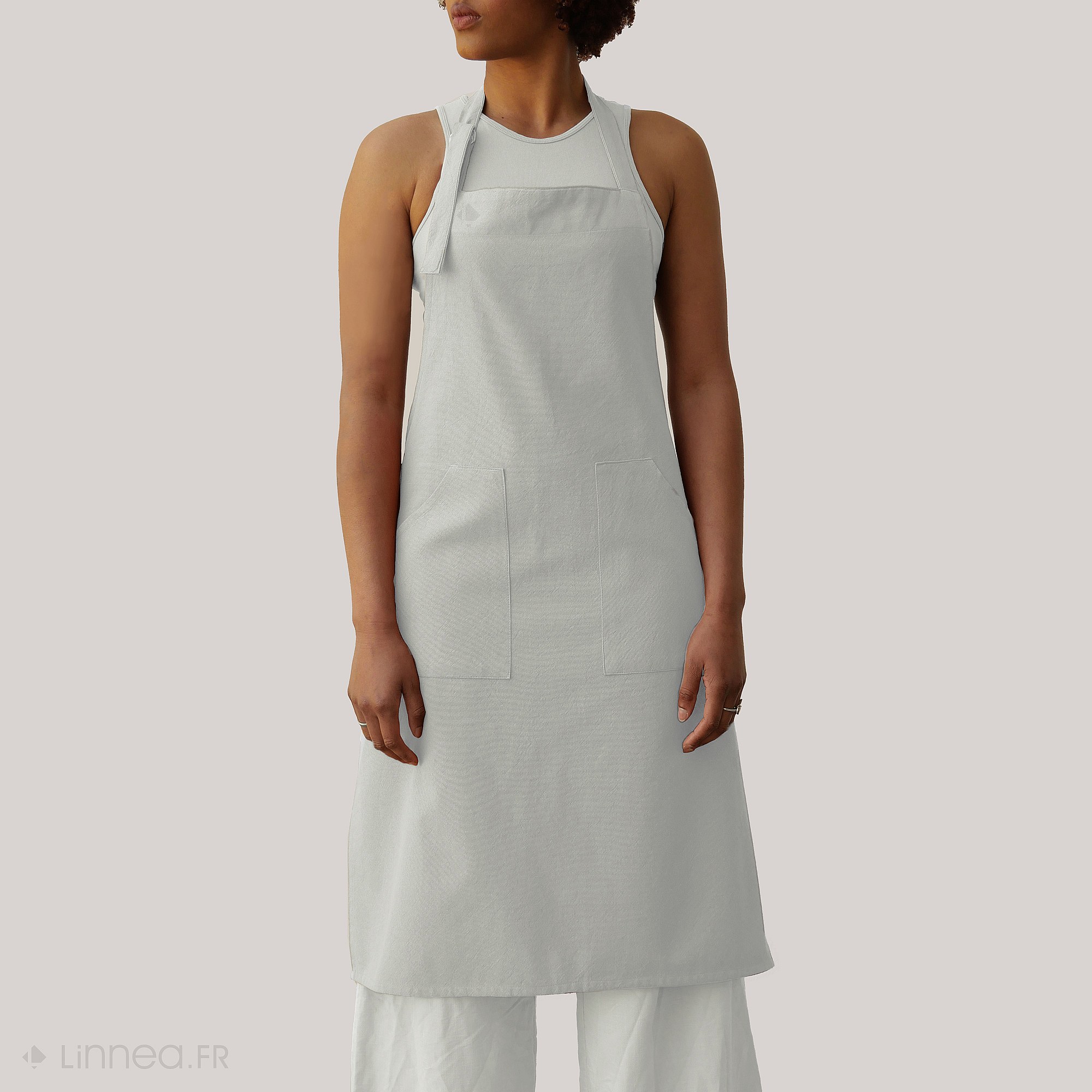 MARGAUX - Tablier Ajustable avec Poche 70x85cm Lin Lavé Coloris Craie