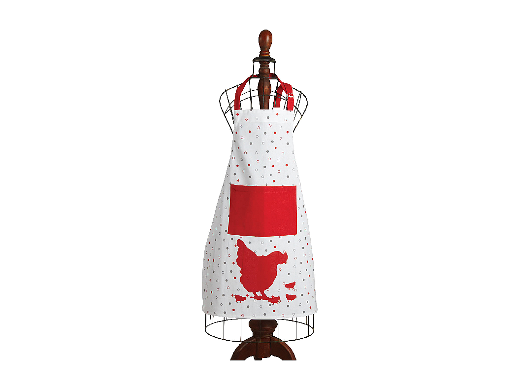 Tablier de cuisine en coton – Motif poule et poche rouge