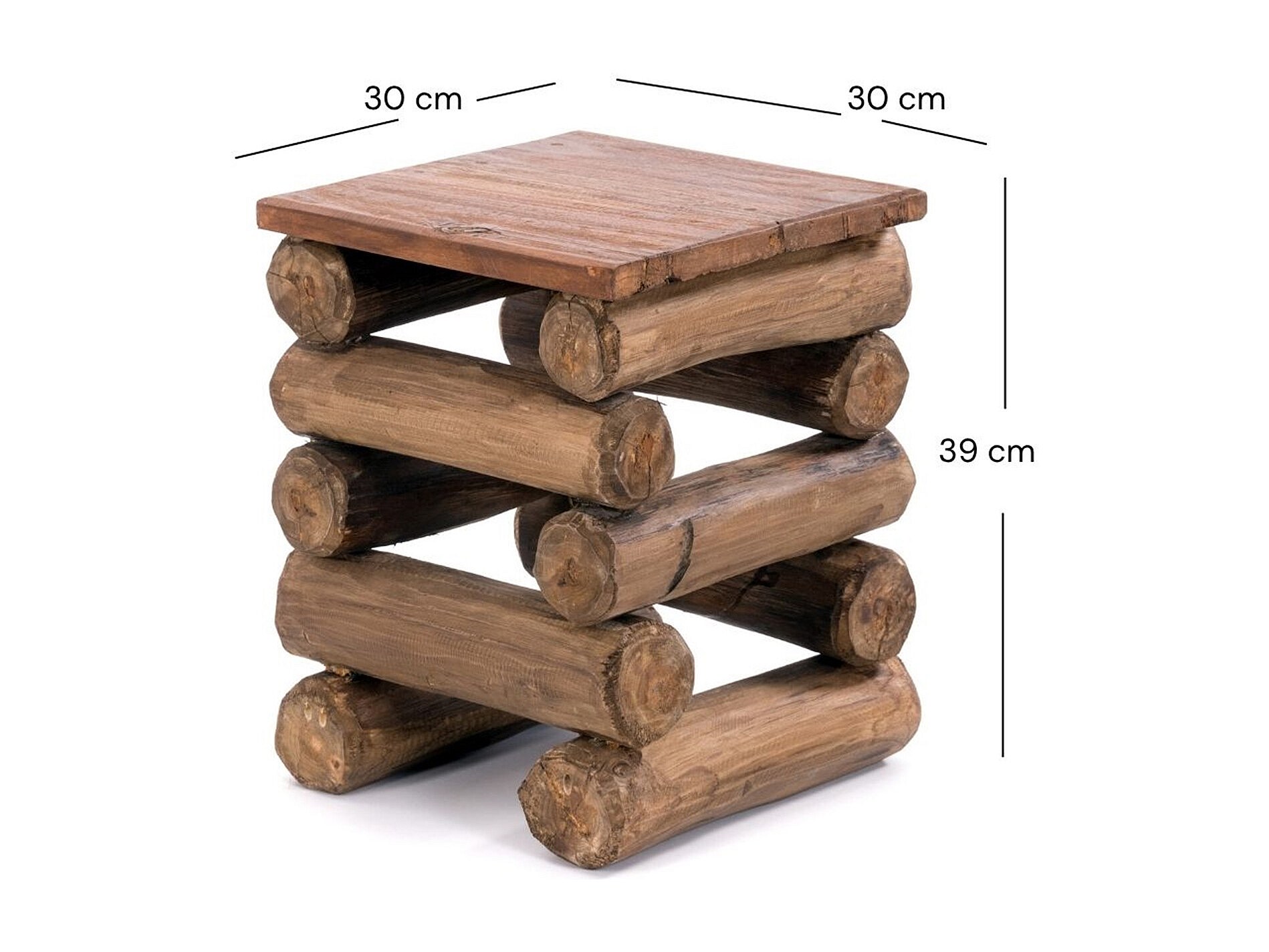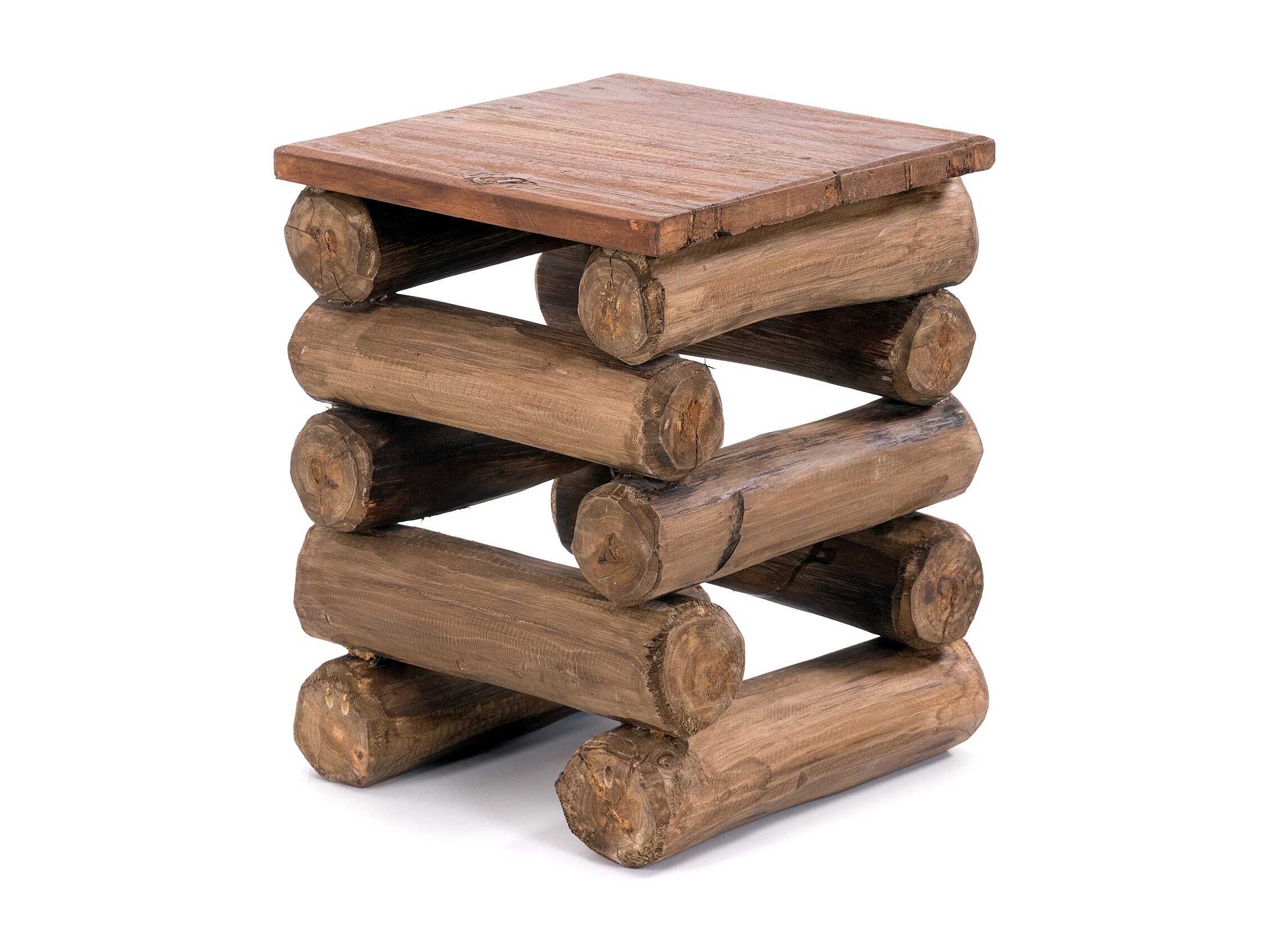 TABOURET BLOC 38 Bois massif recyclé en teck 01 natur-vintage