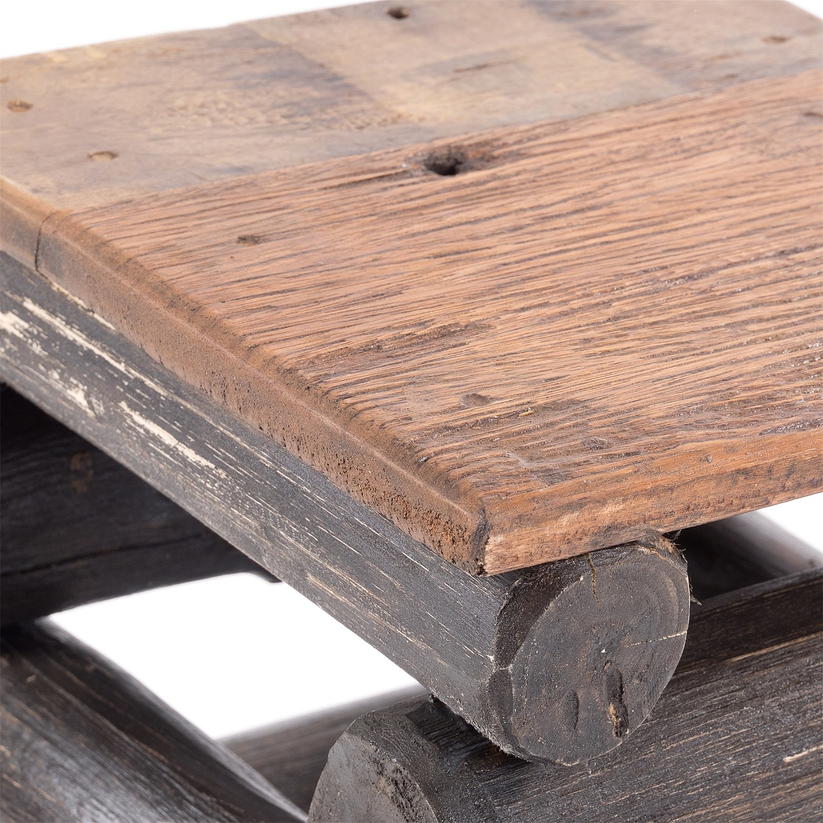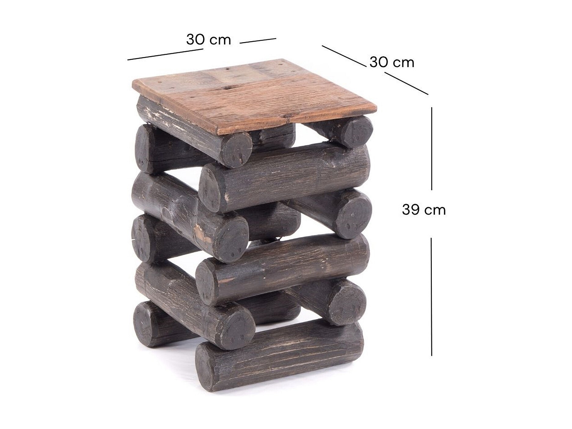 TABOURET BLOC 38 Bois massif recyclé en teck 04 schwarz-natur