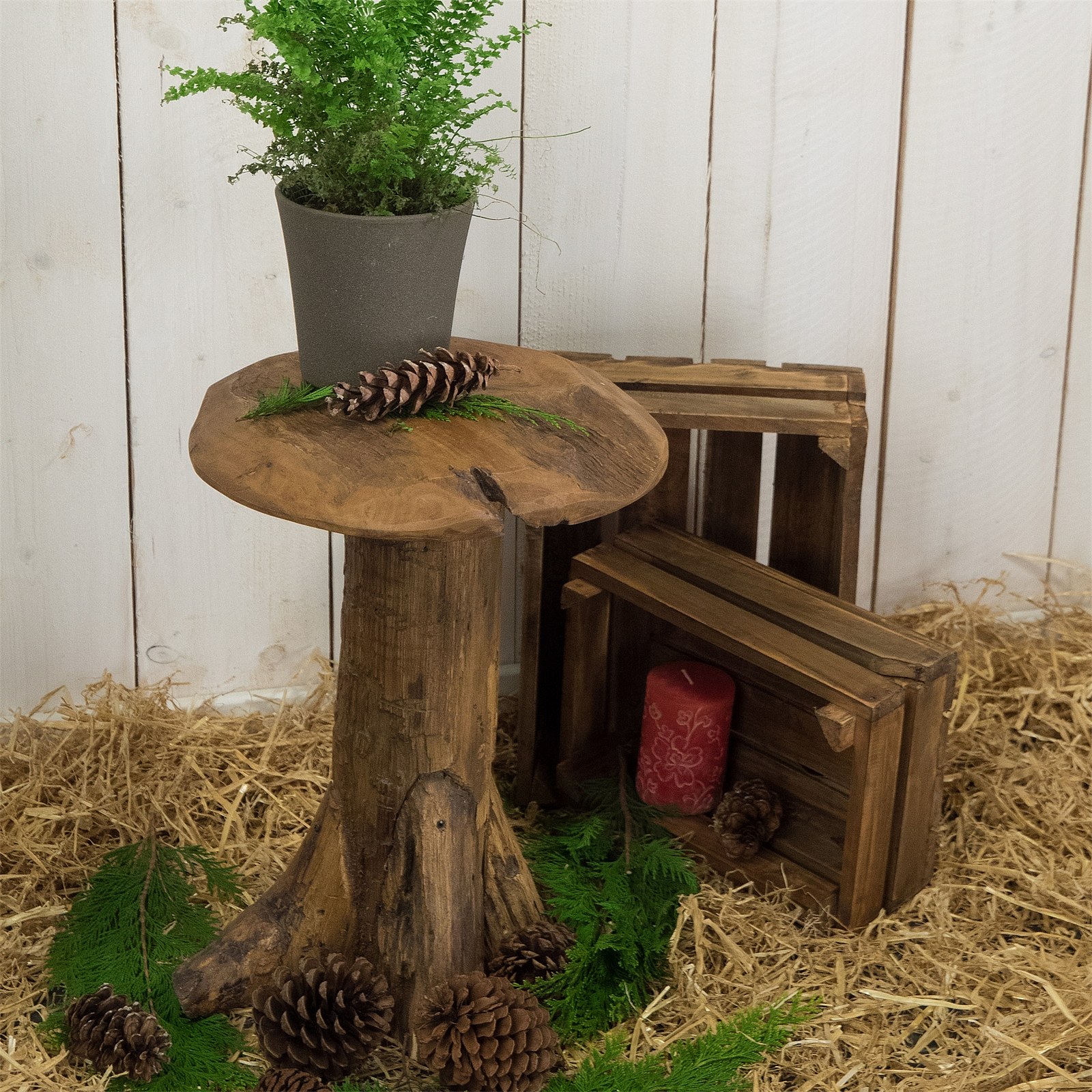 TABOURET Champignon Bois de racine de teck massif couleurs naturelles