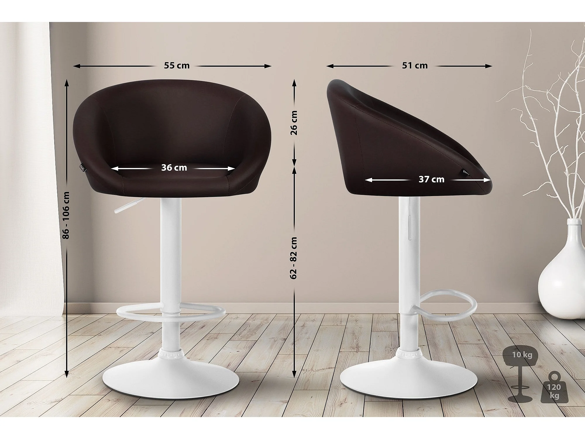 Tabouret de bar assise métal blanche 55 x 51 x 86 cm 10_0004770