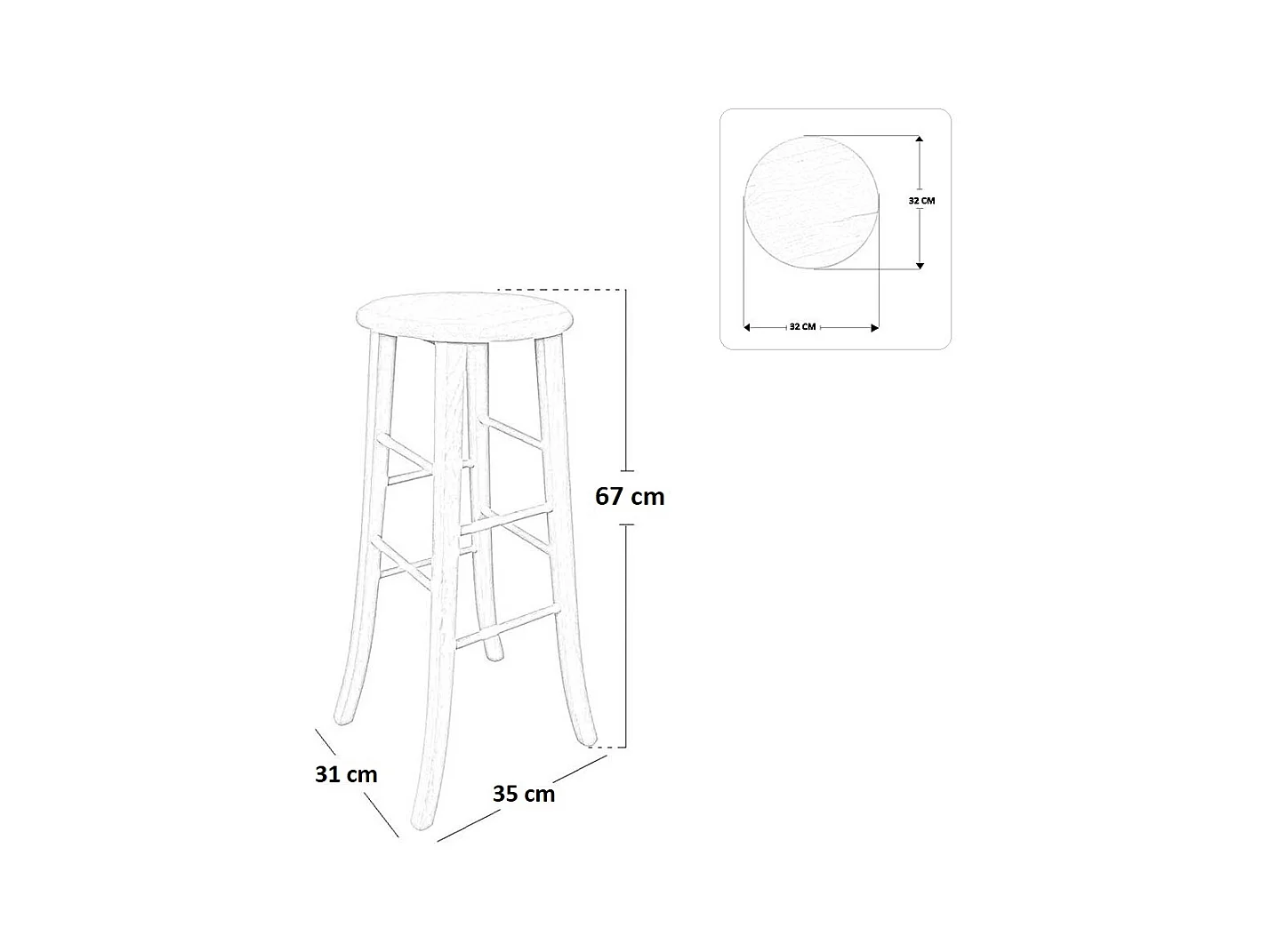 Tabouret en bois avec assise ronde h 68 pieds droits noyer clair