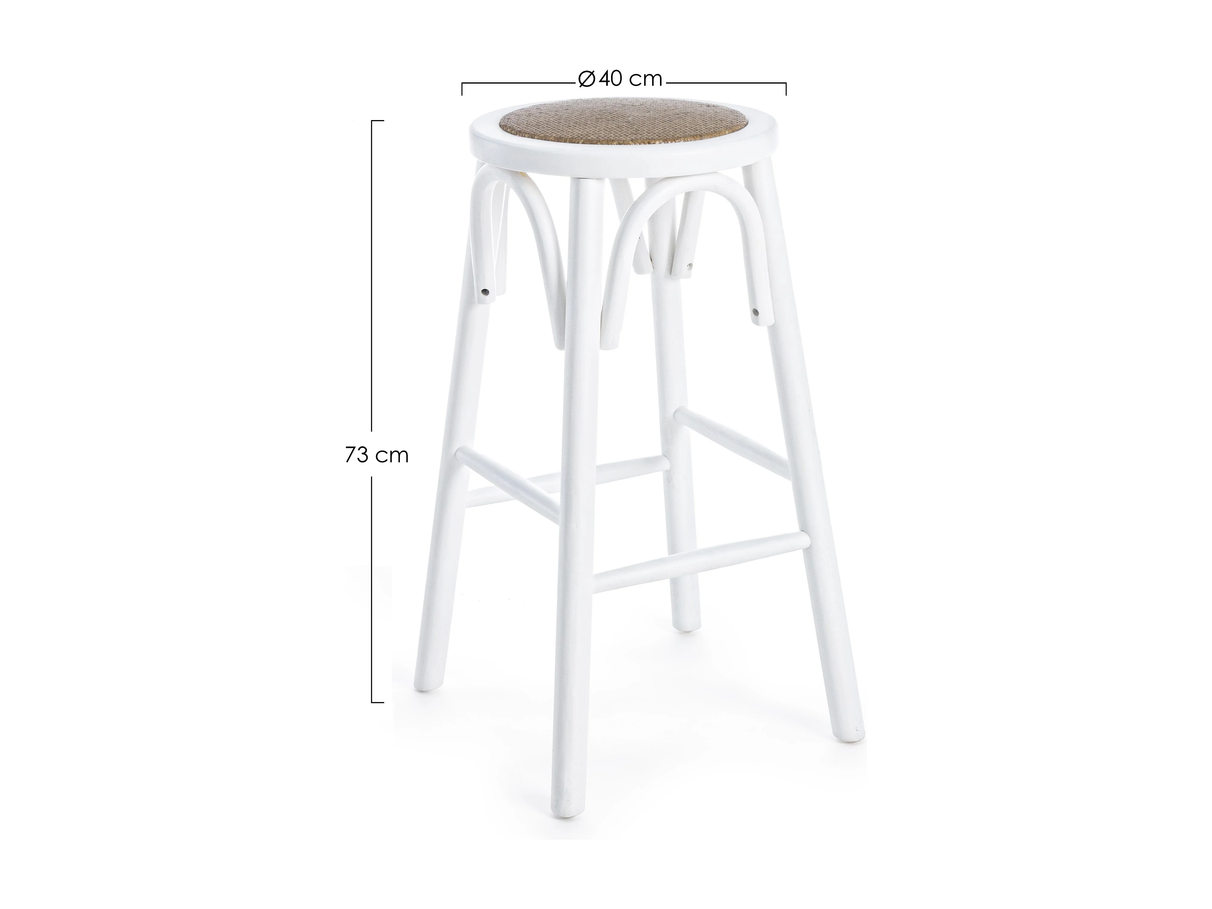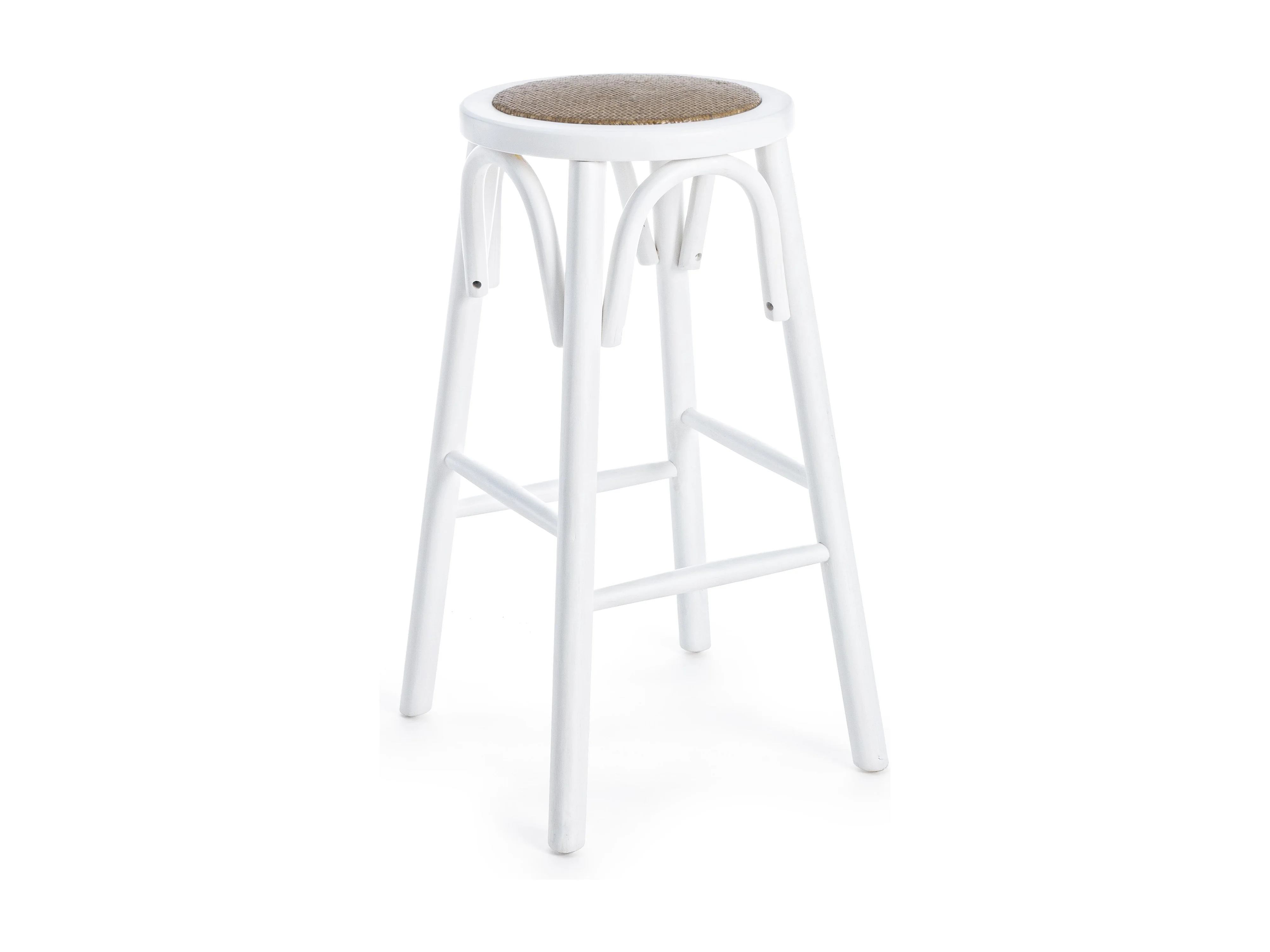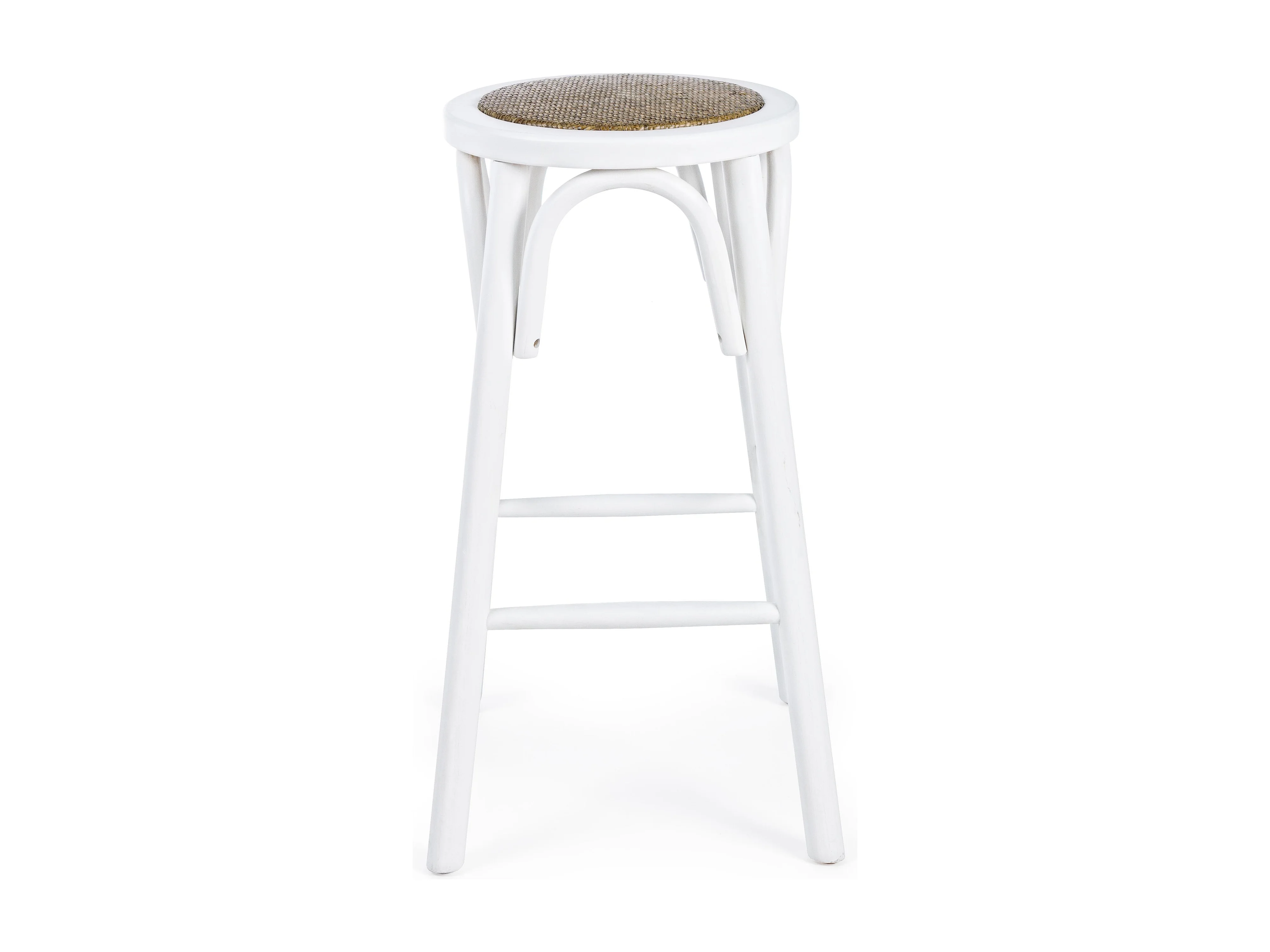 Tabouret de bar en bois d'orme et rotin blanc Cikia