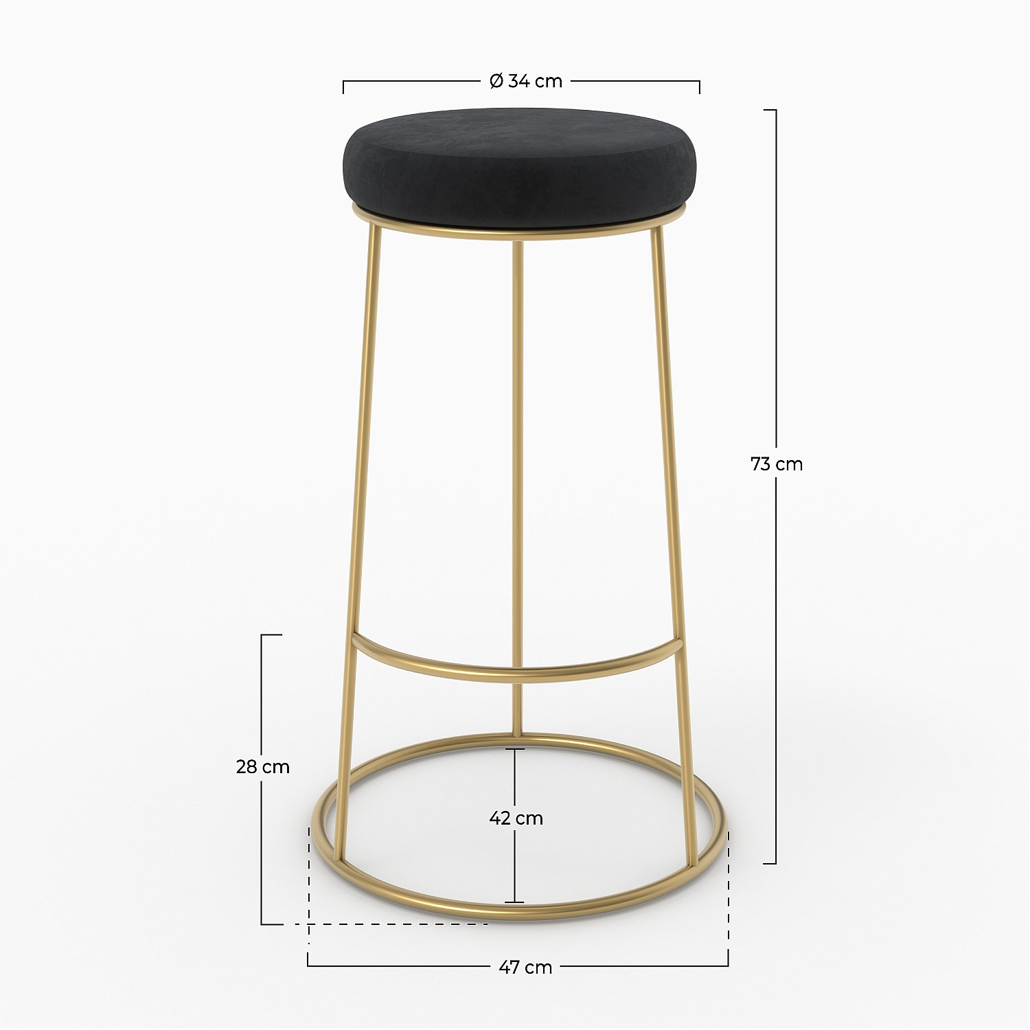 Lot de 2 tabourets de bar 73 cm en velours noir - Kendal