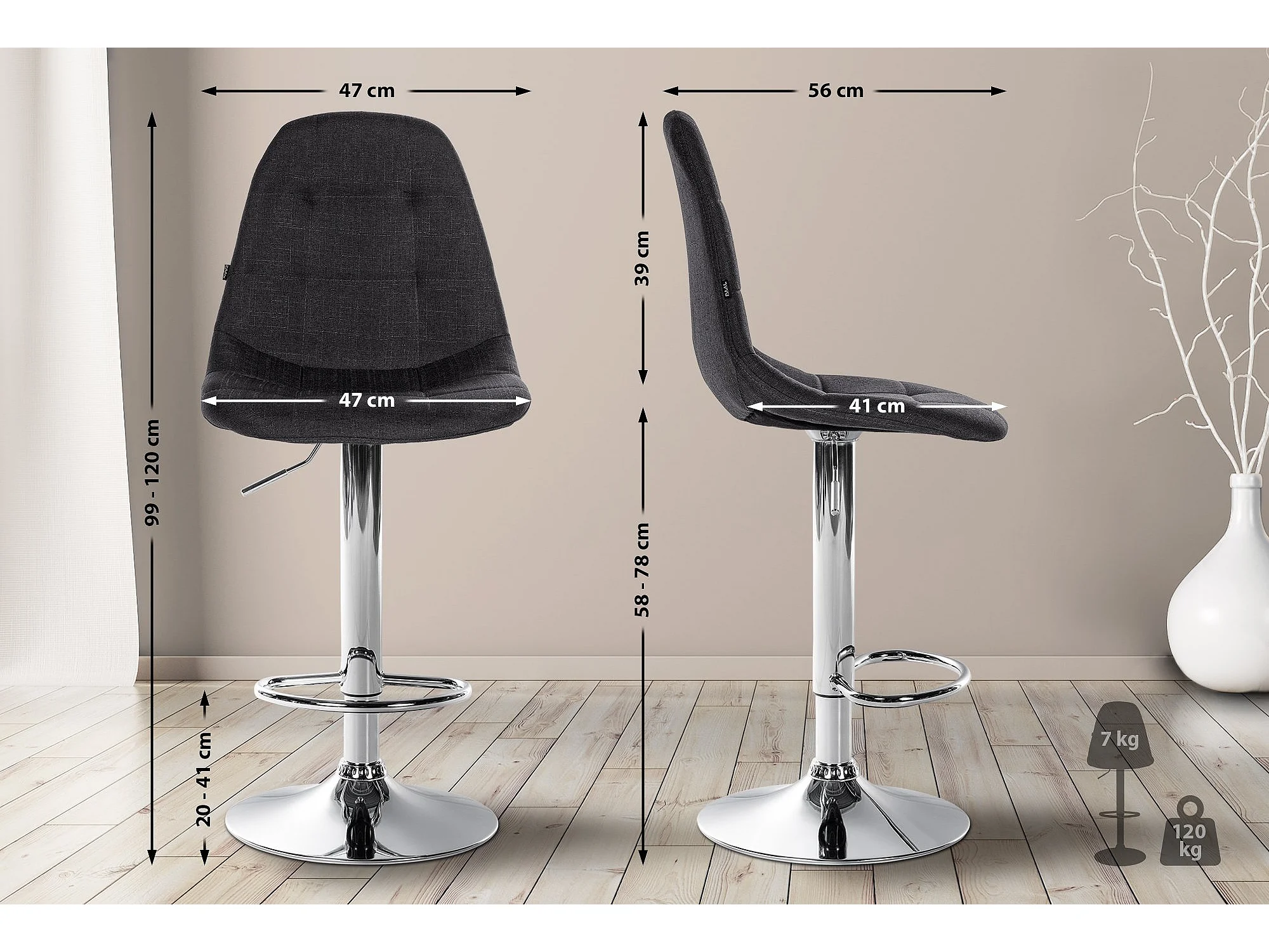 Tabouret de bar, pivotante, hauteur réglable 65-85 cm, repose-pieds, avec dossier(noir,2)