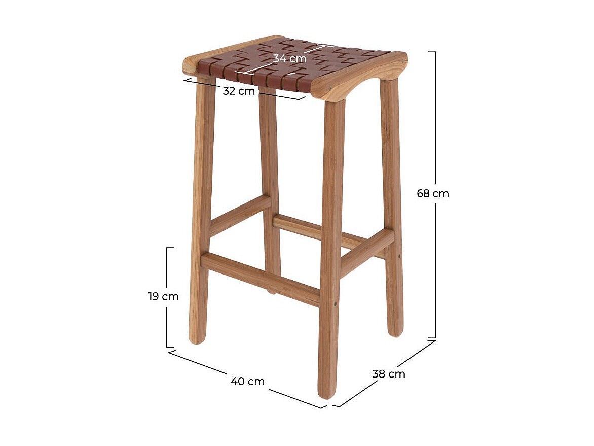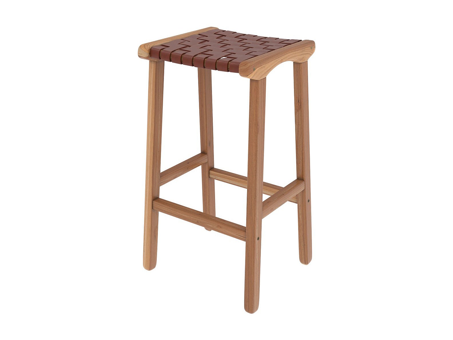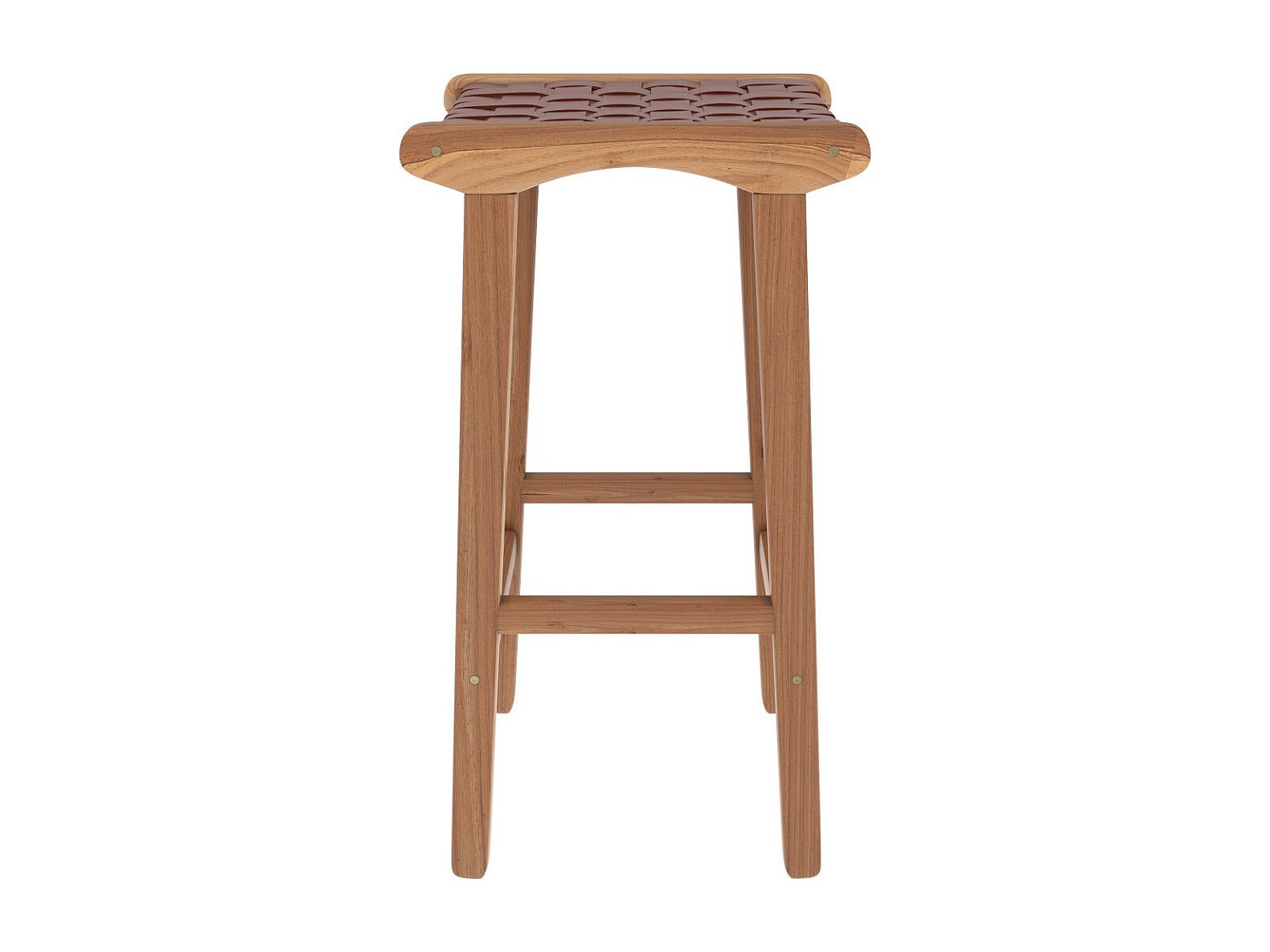 Tabouret pour îlot central 67 cm en teck et cuir tressé marron - Yuma