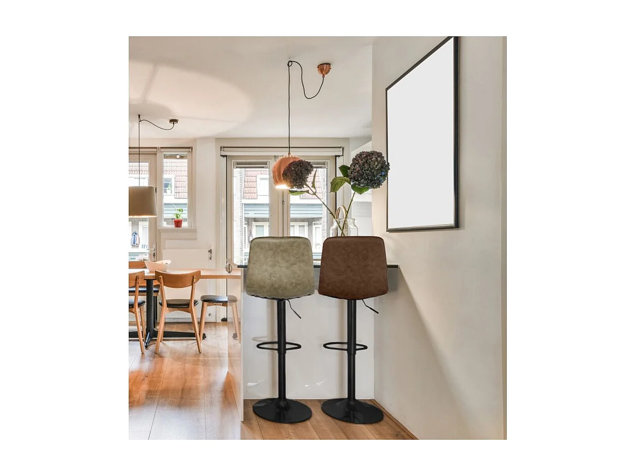 Tabouret de bar réglable en microfibre marron pied métal noir - COBY