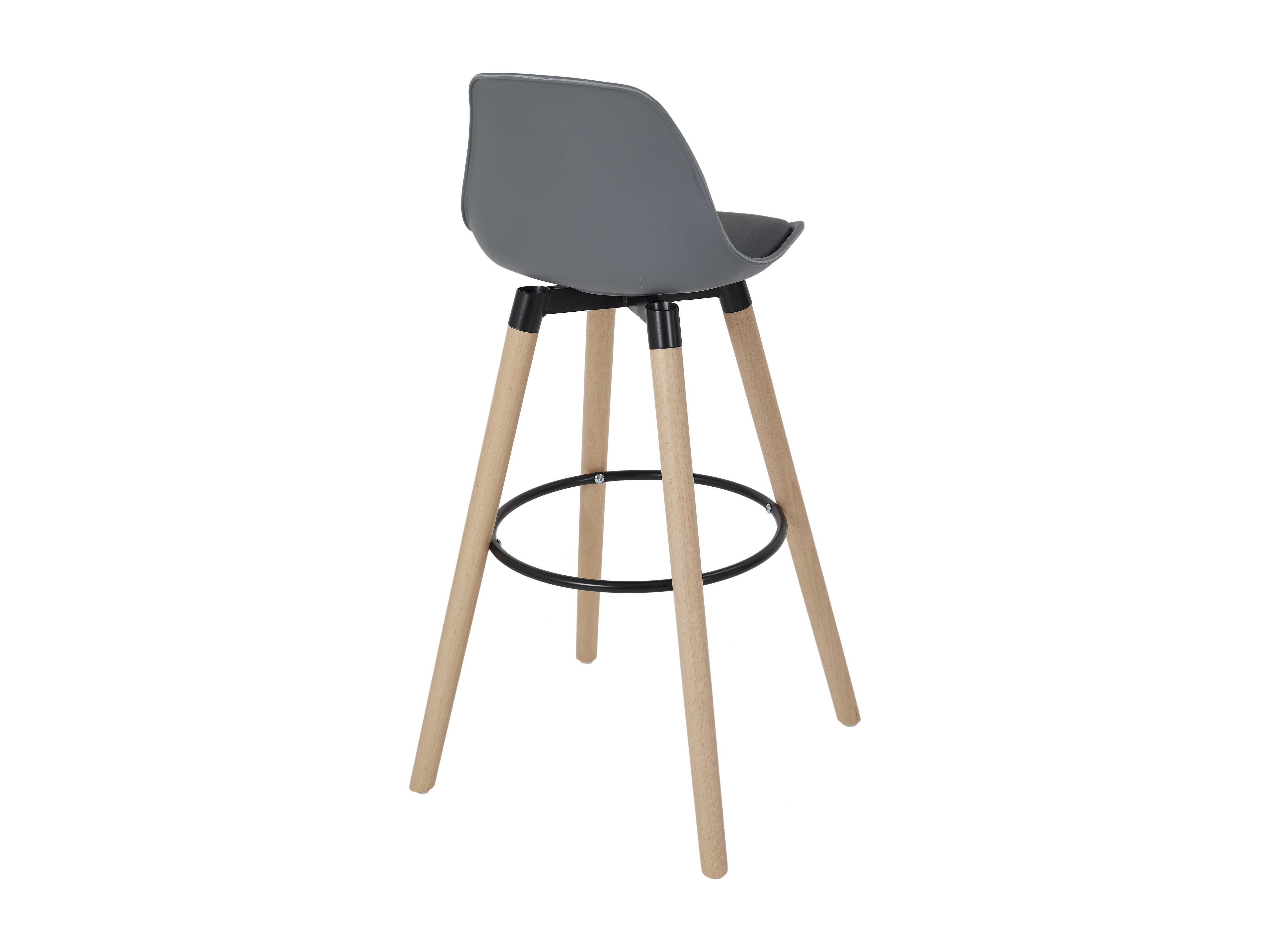 Tabouret de bar en lin avec coussin de siège, design moderne, bois et tissu, gris, avec repose-pieds (55x48x100cm)