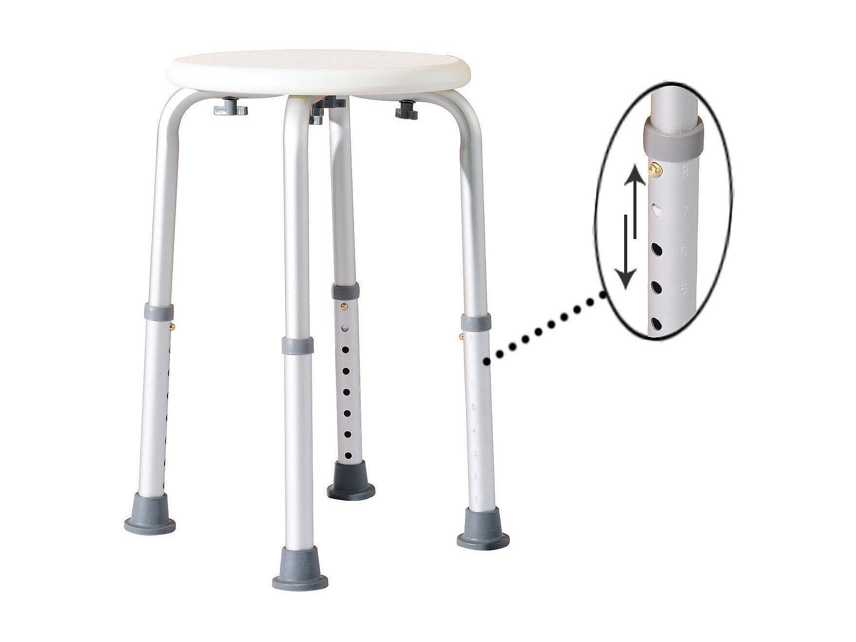 Tabouret de douche réglable en hauteur siège de douche ergonomique pieds antidérapants charge max. 136 Kg alu HDPE blanc