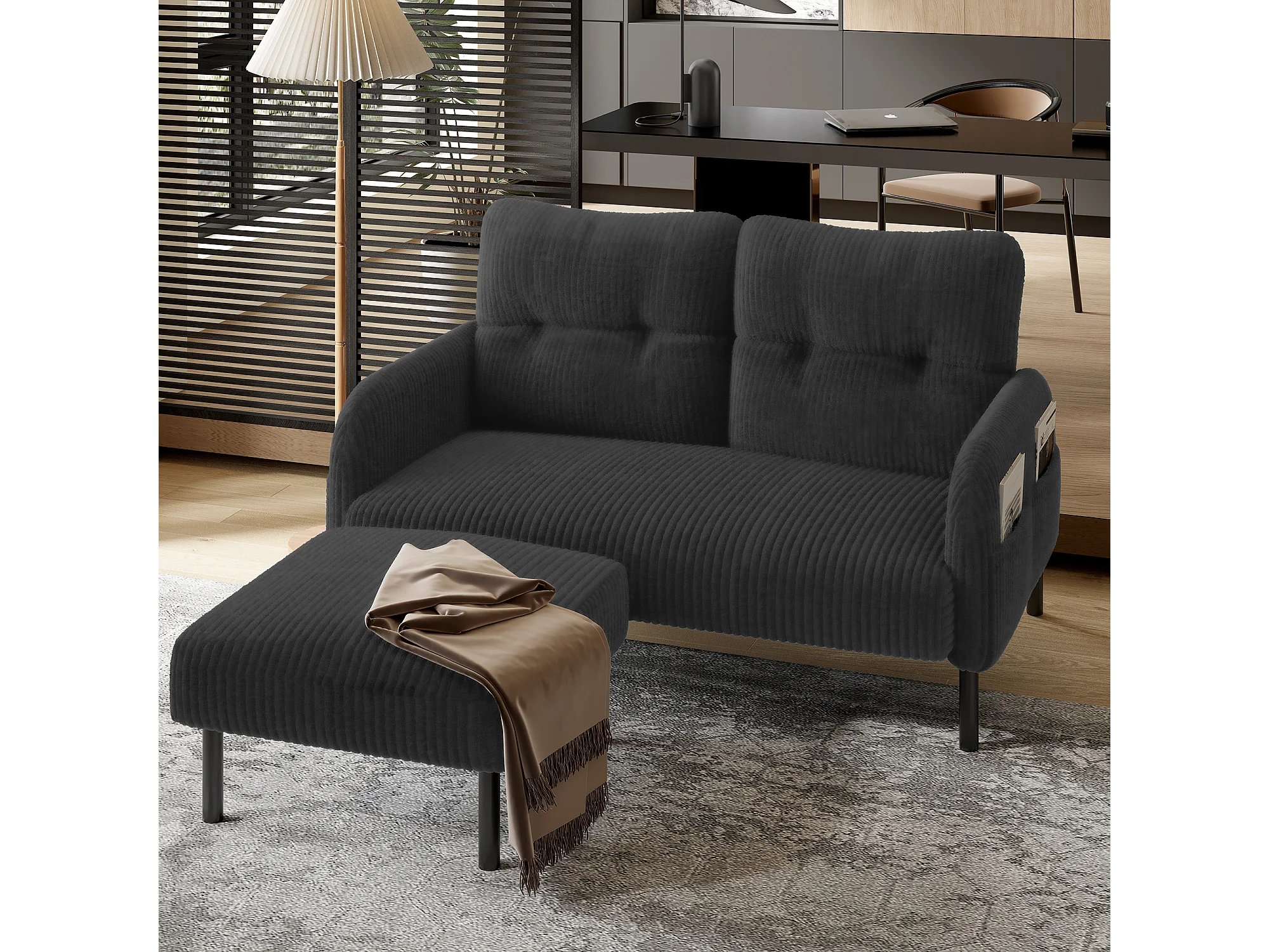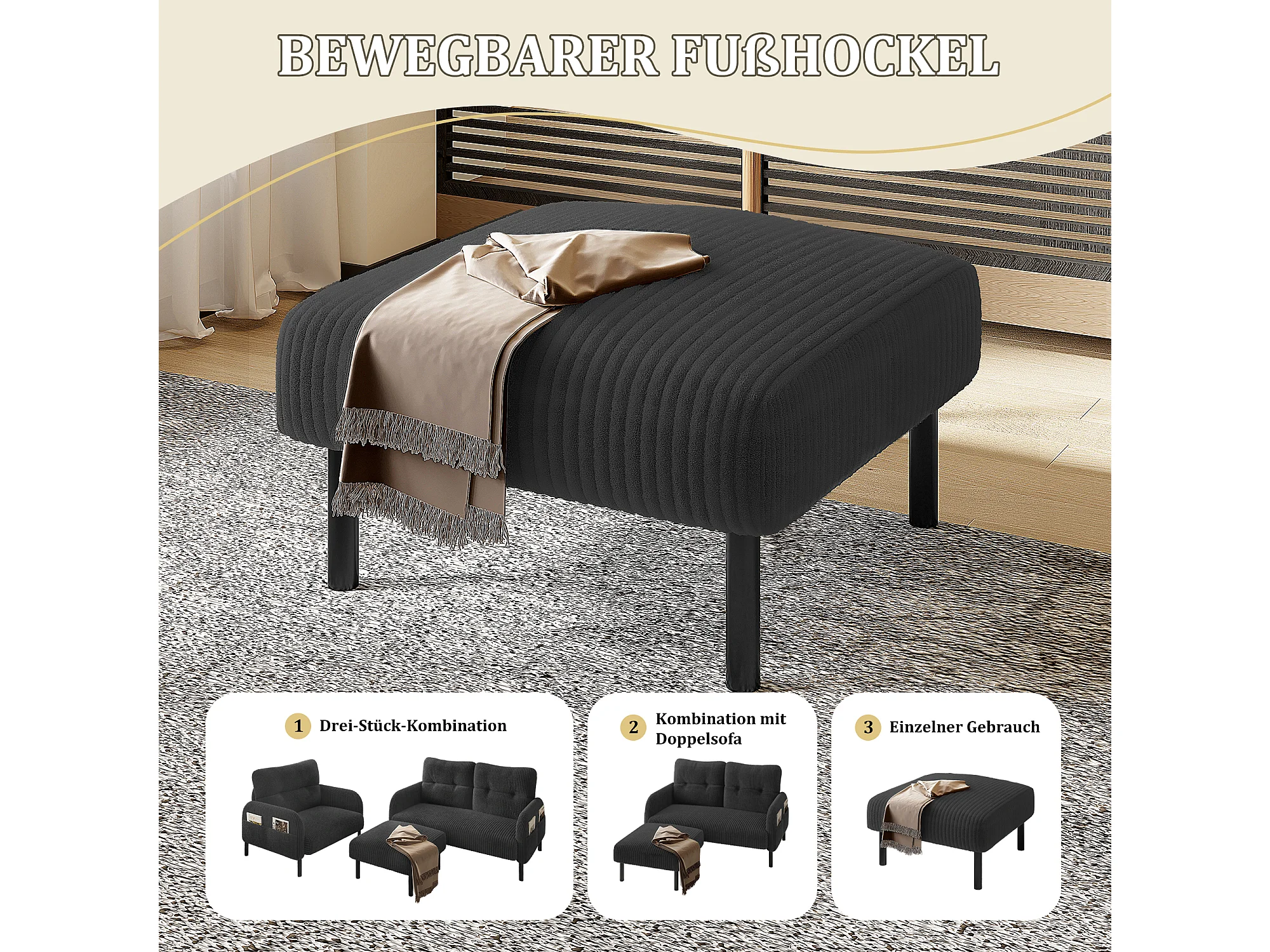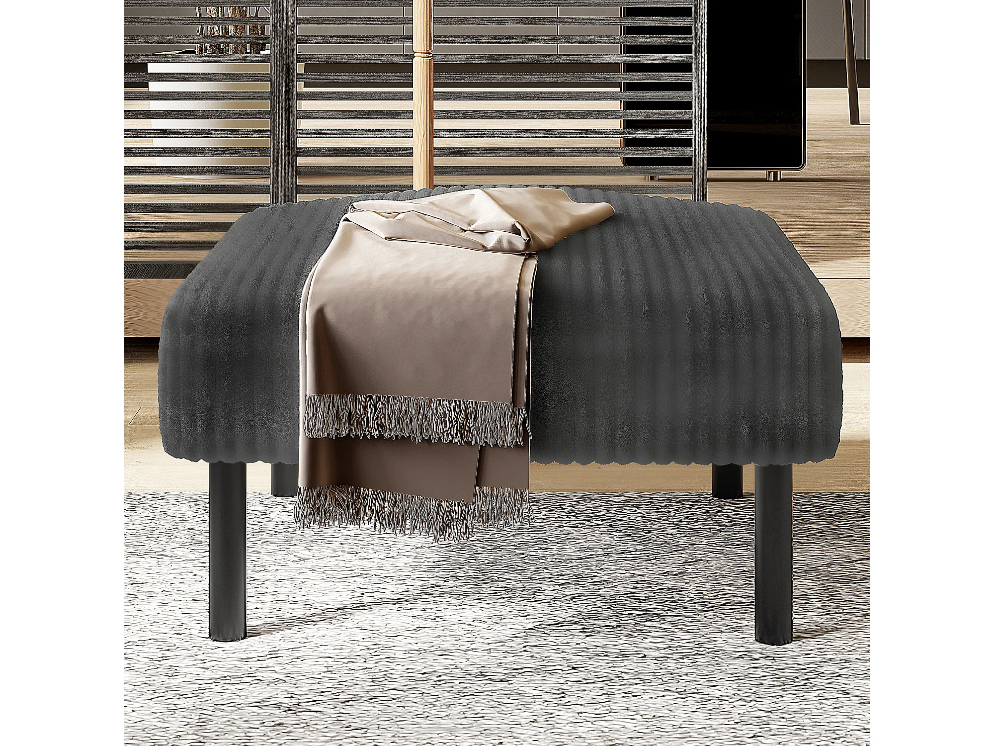 Tabouret design en velours côtelé, ultra-doux avec structure métallique, gris (60x56x18 cm)