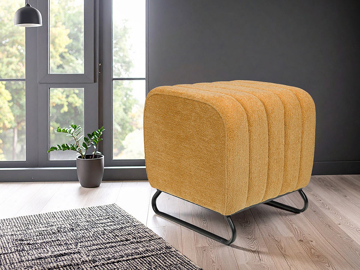 Pouf en tissu texturé 3D Clarisse - Beige - L90 x P50 x H41cm - Loungitude