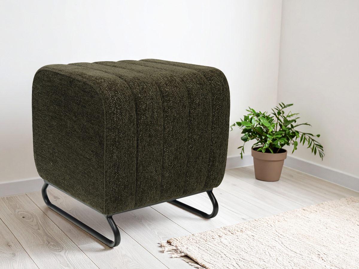 Pouf coffre de rangement en tissu texturé beige TINETIA