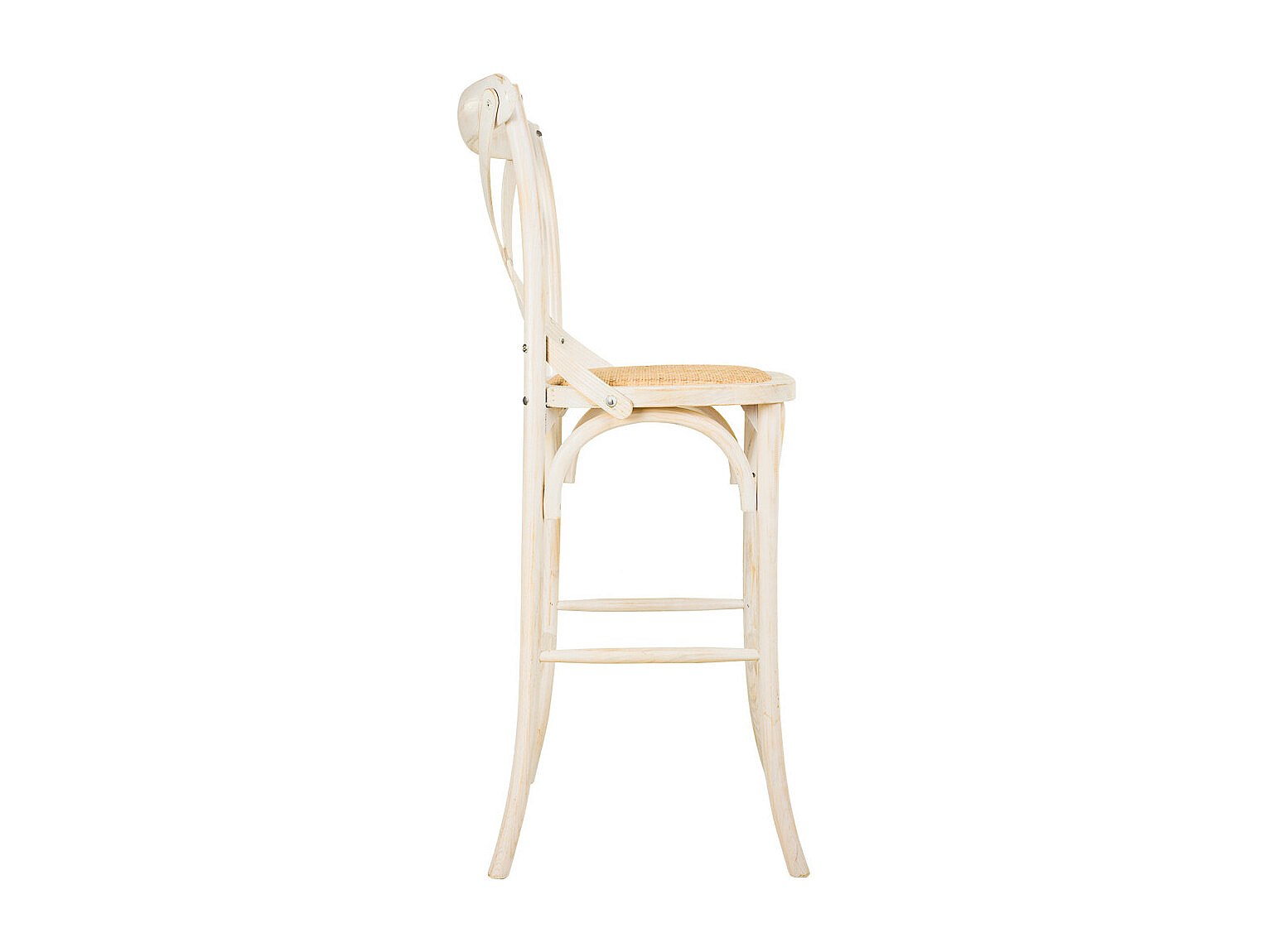 Tabouret de bar en bois et assise en rotin blanc 45x53x75/116h