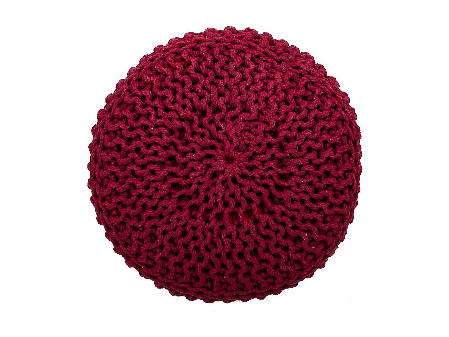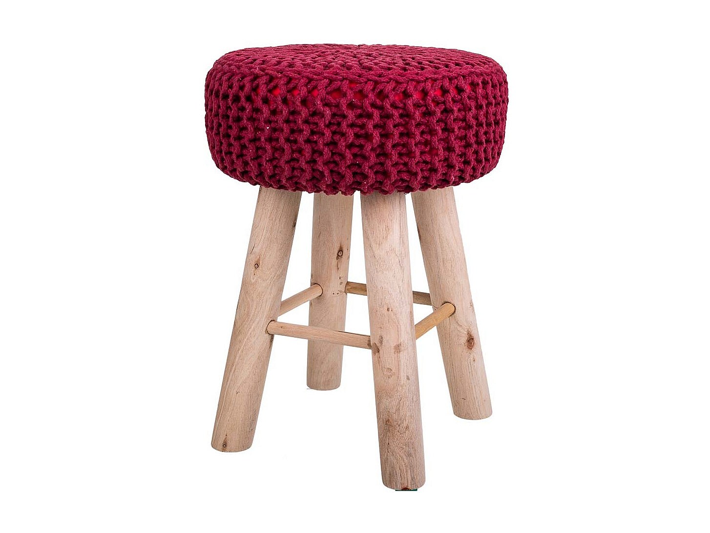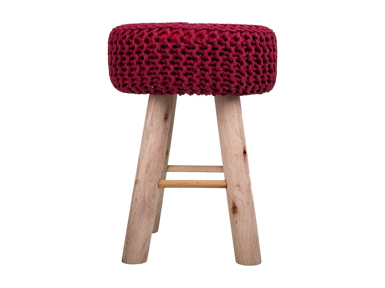 Tabouret en bois et coton tressé rouge 32x32x44h