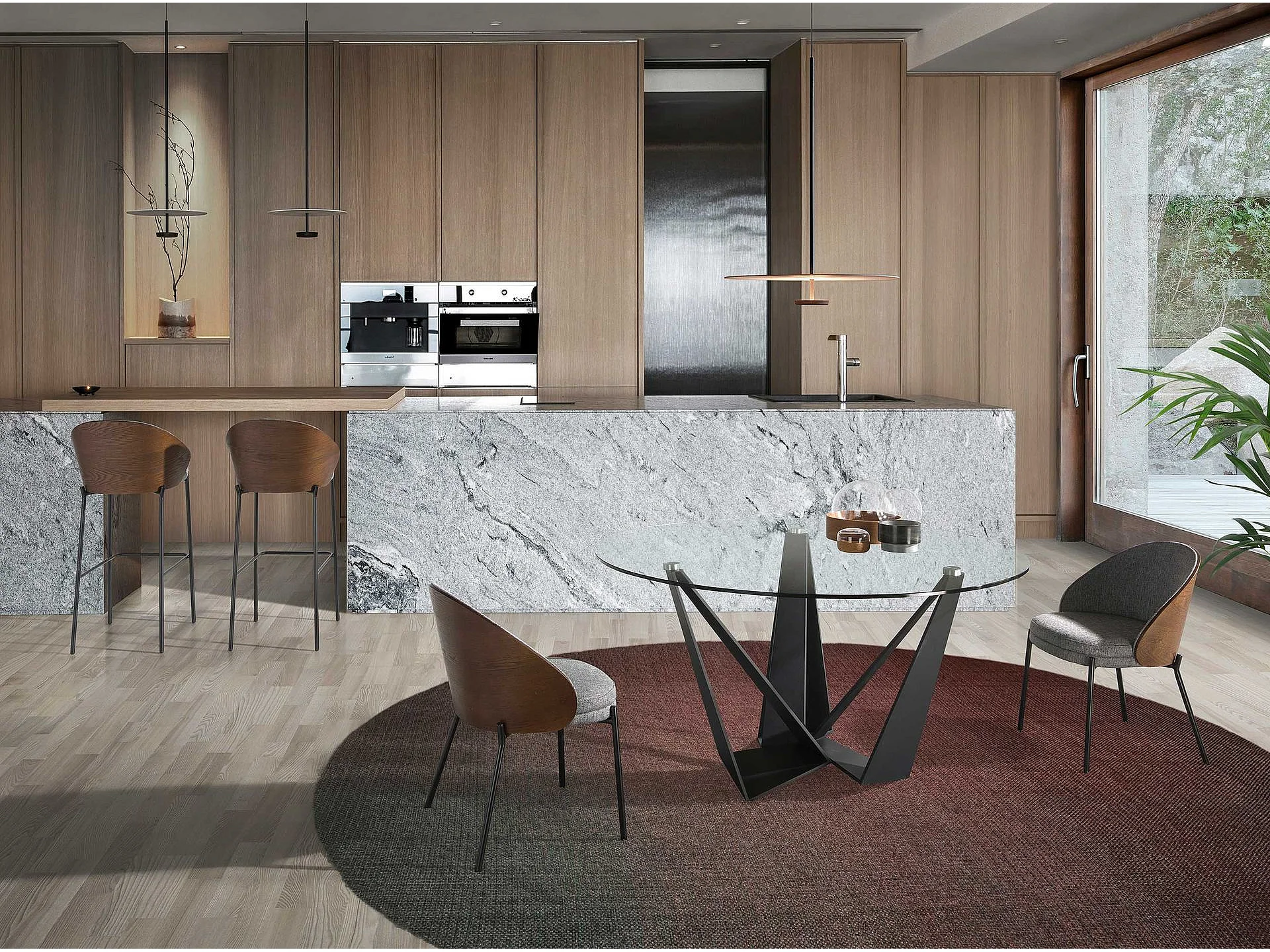 Tabouret en tissu gris et noyer 4127 ANGEL CERDA