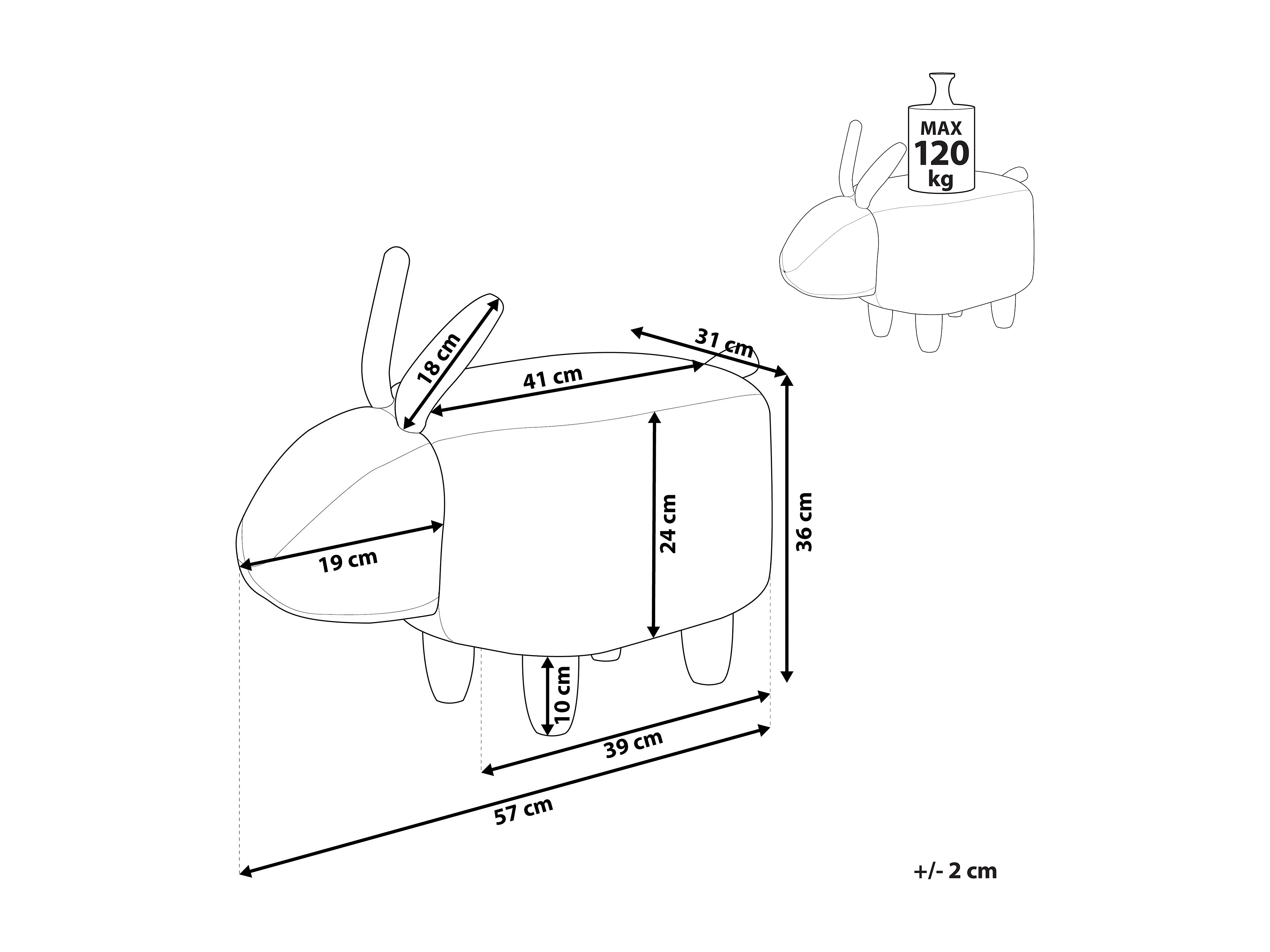 Tabouret animal BUNNY Tissu Blanc cassé