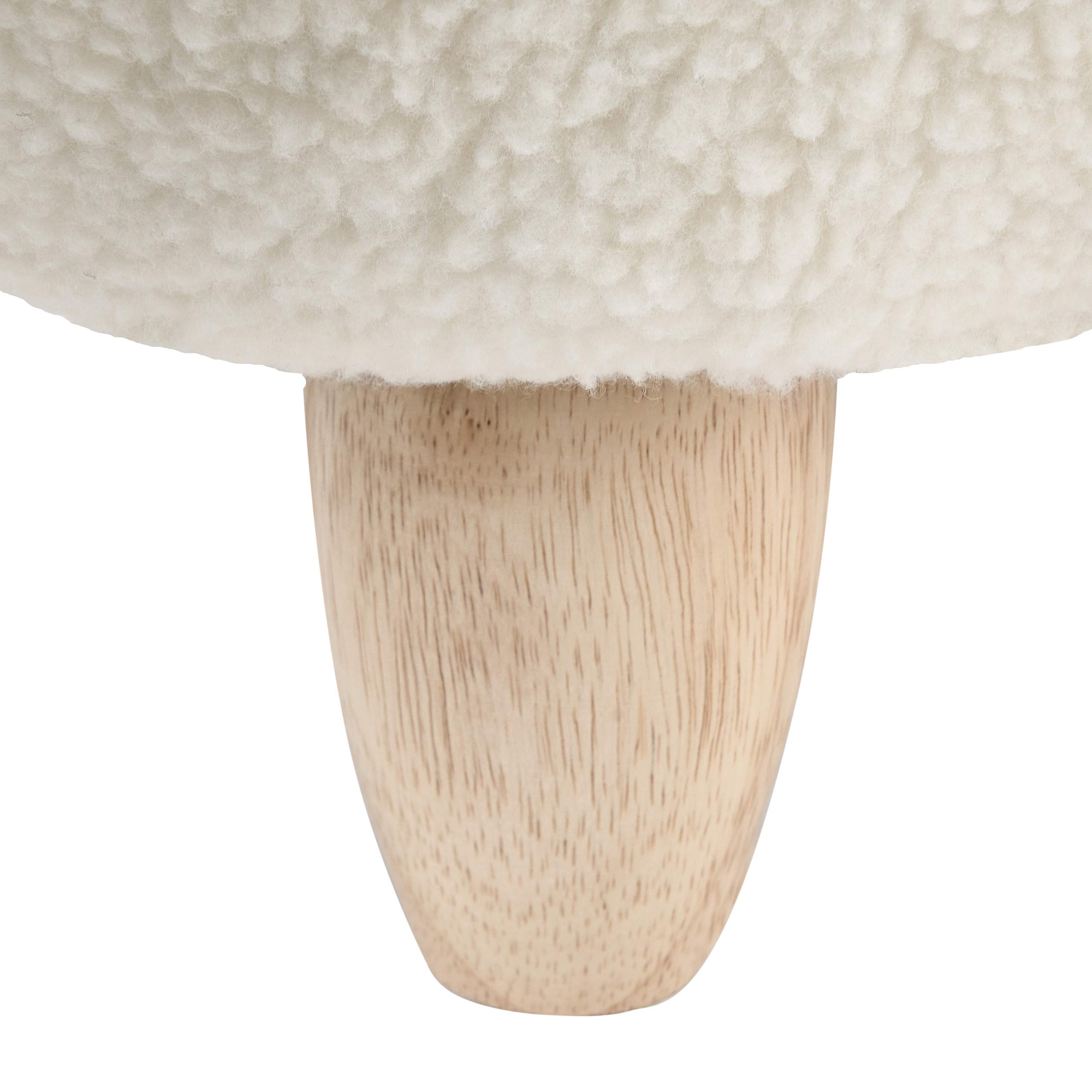 Tabouret bas en tissu effet laine bouclée blanc et bois clair massif H46 cm GUESTA