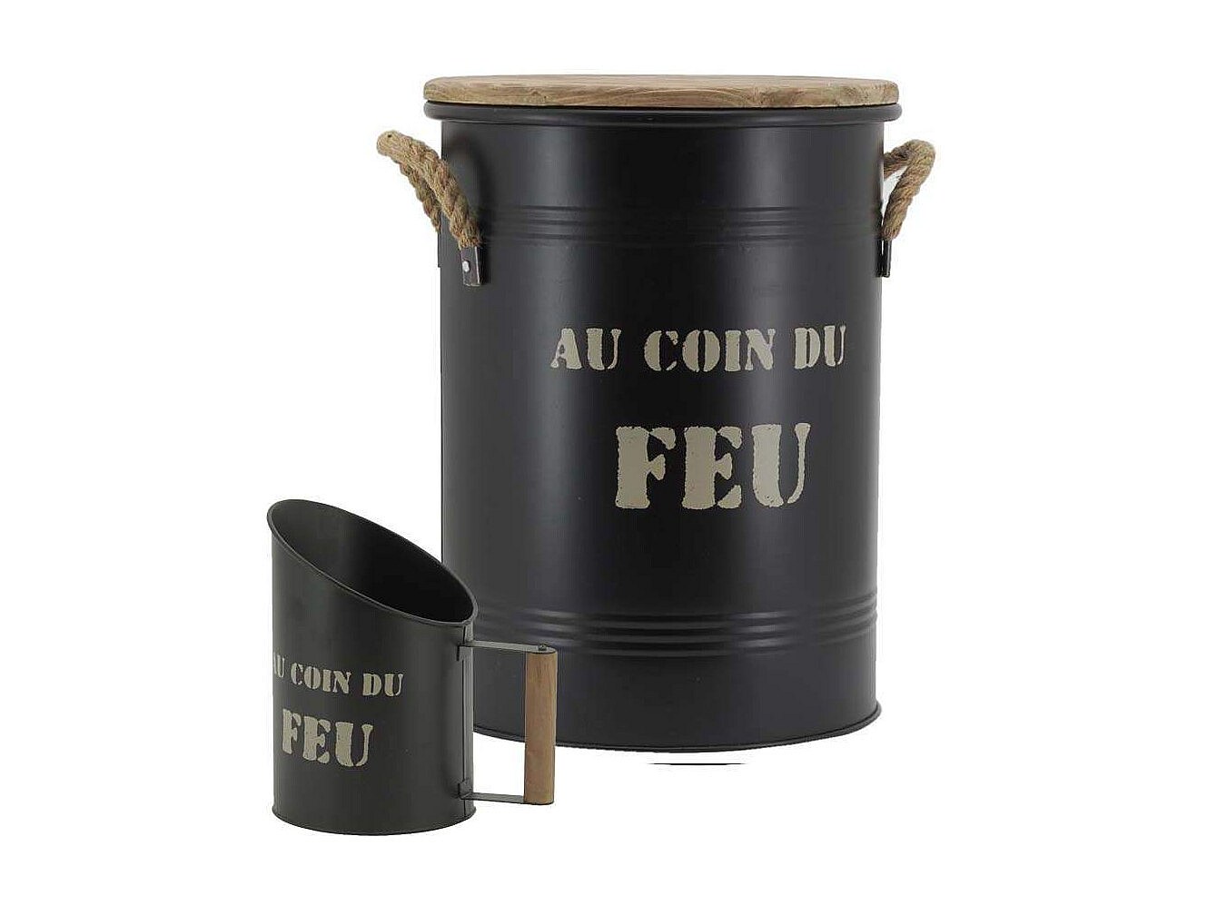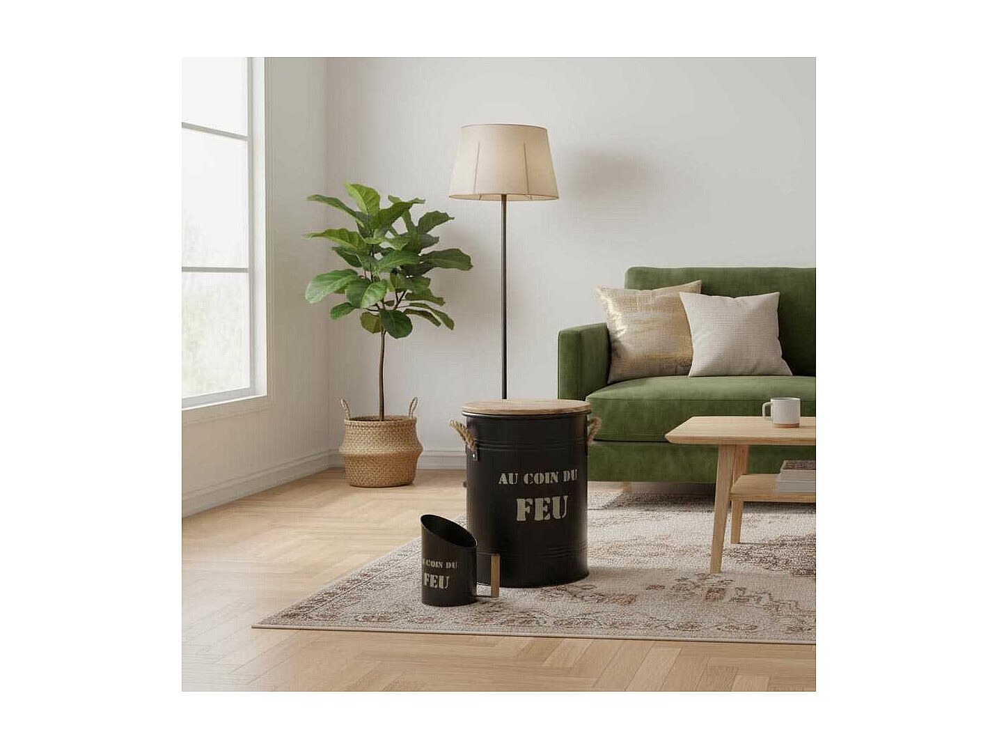 Tabouret et seau à pellets avec pelle Au coin du feu Métal laqué Au coin du feu