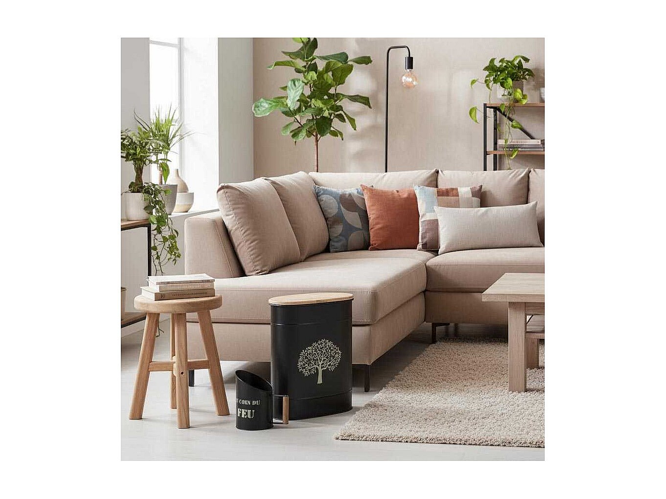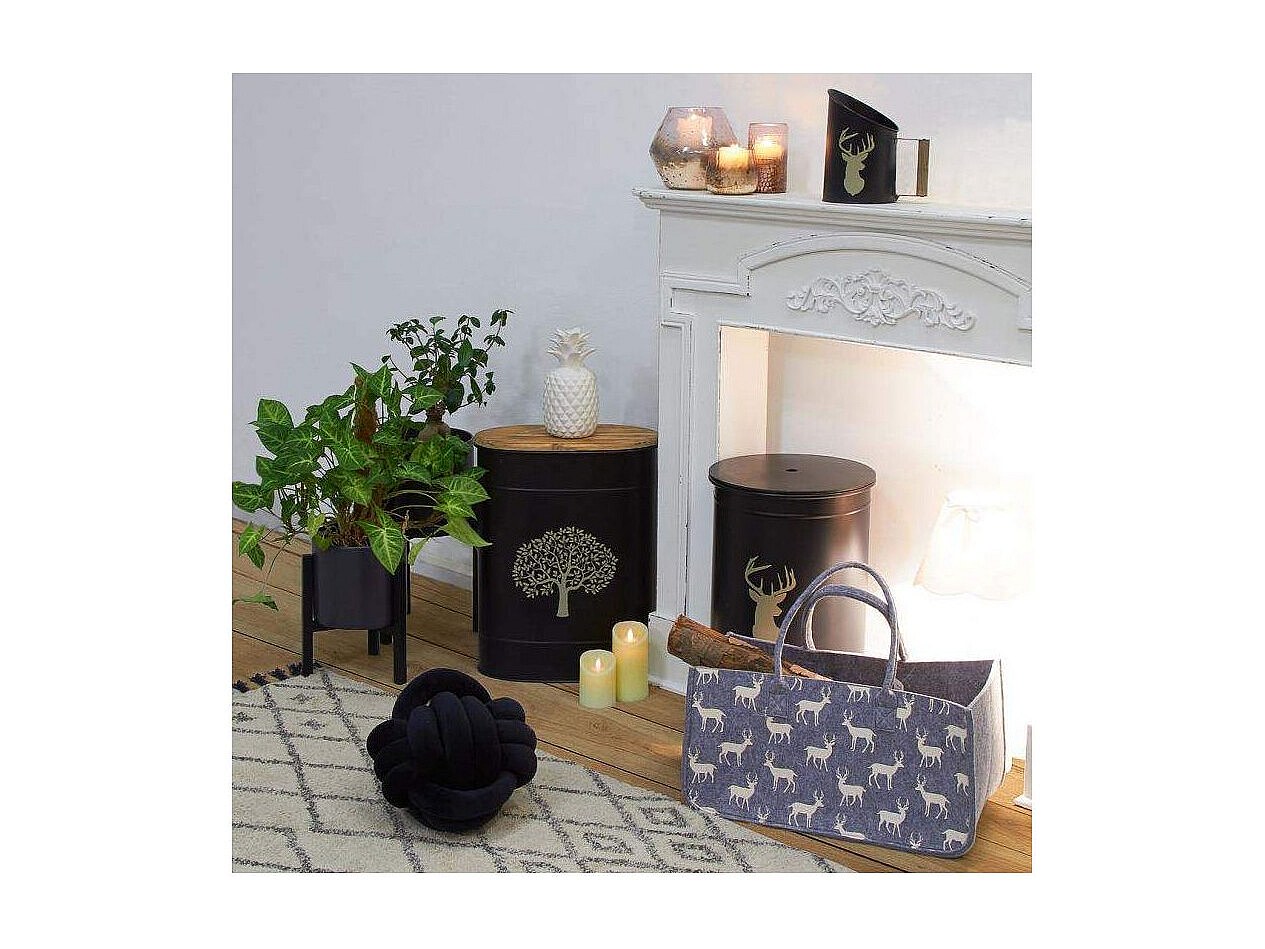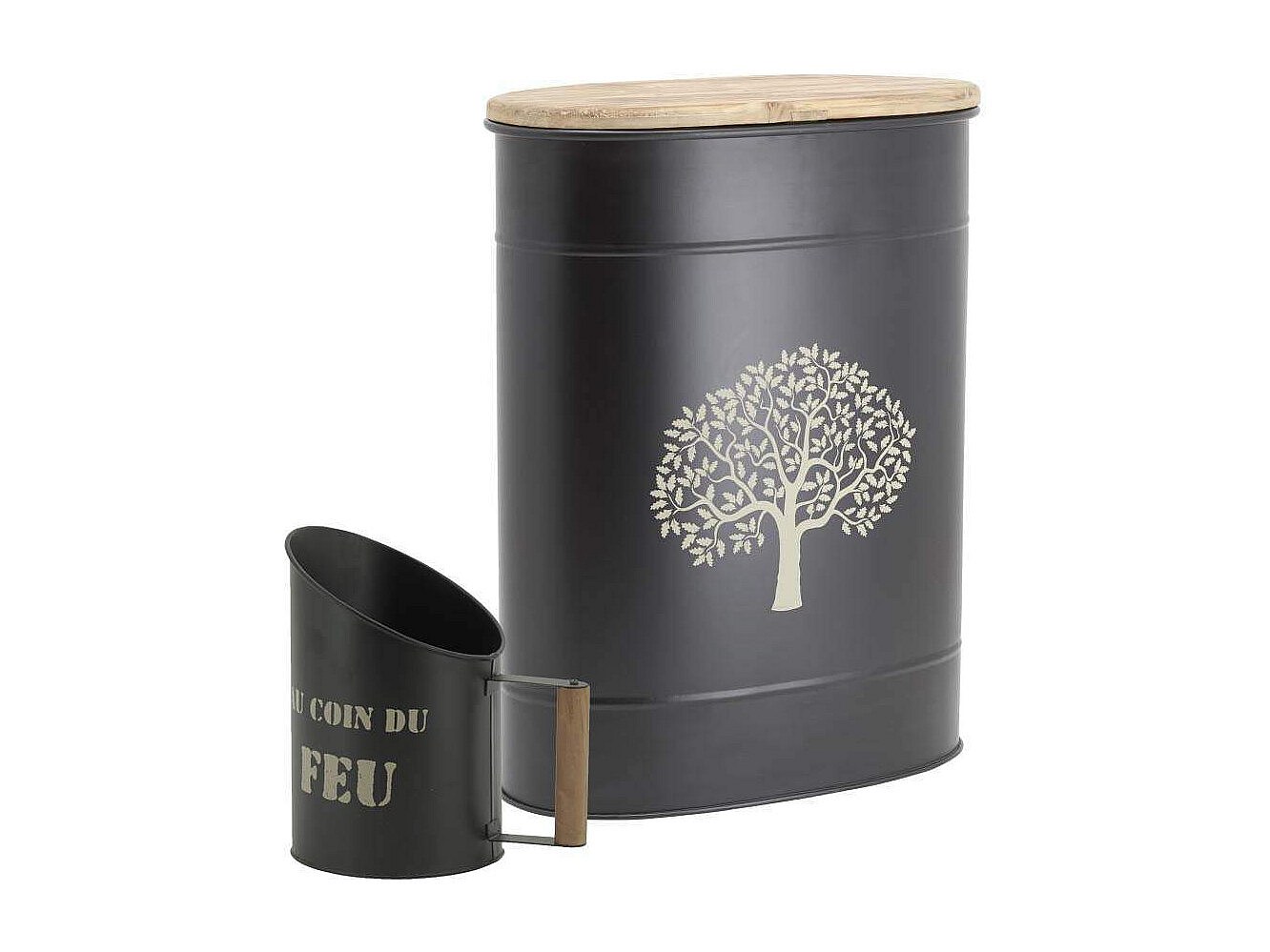 Tabouret et seau à pellets avec pelle Au coin du feu Métal noir Arbre