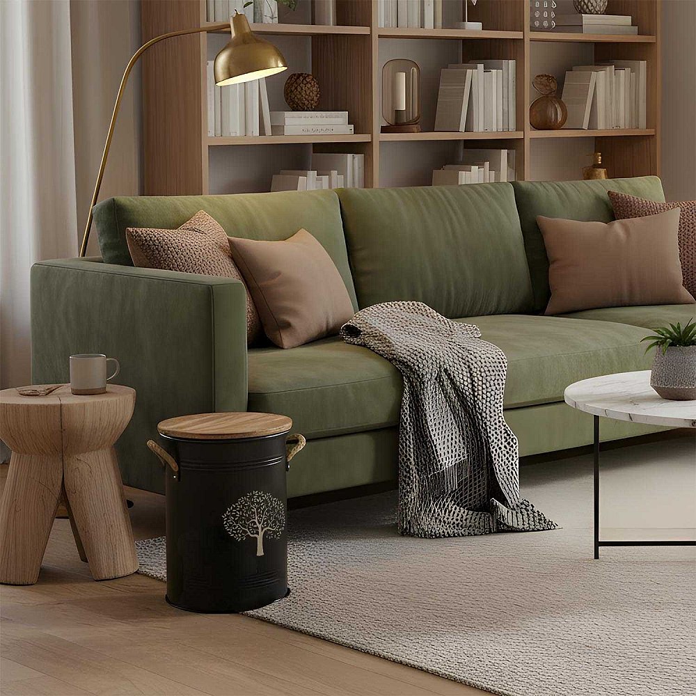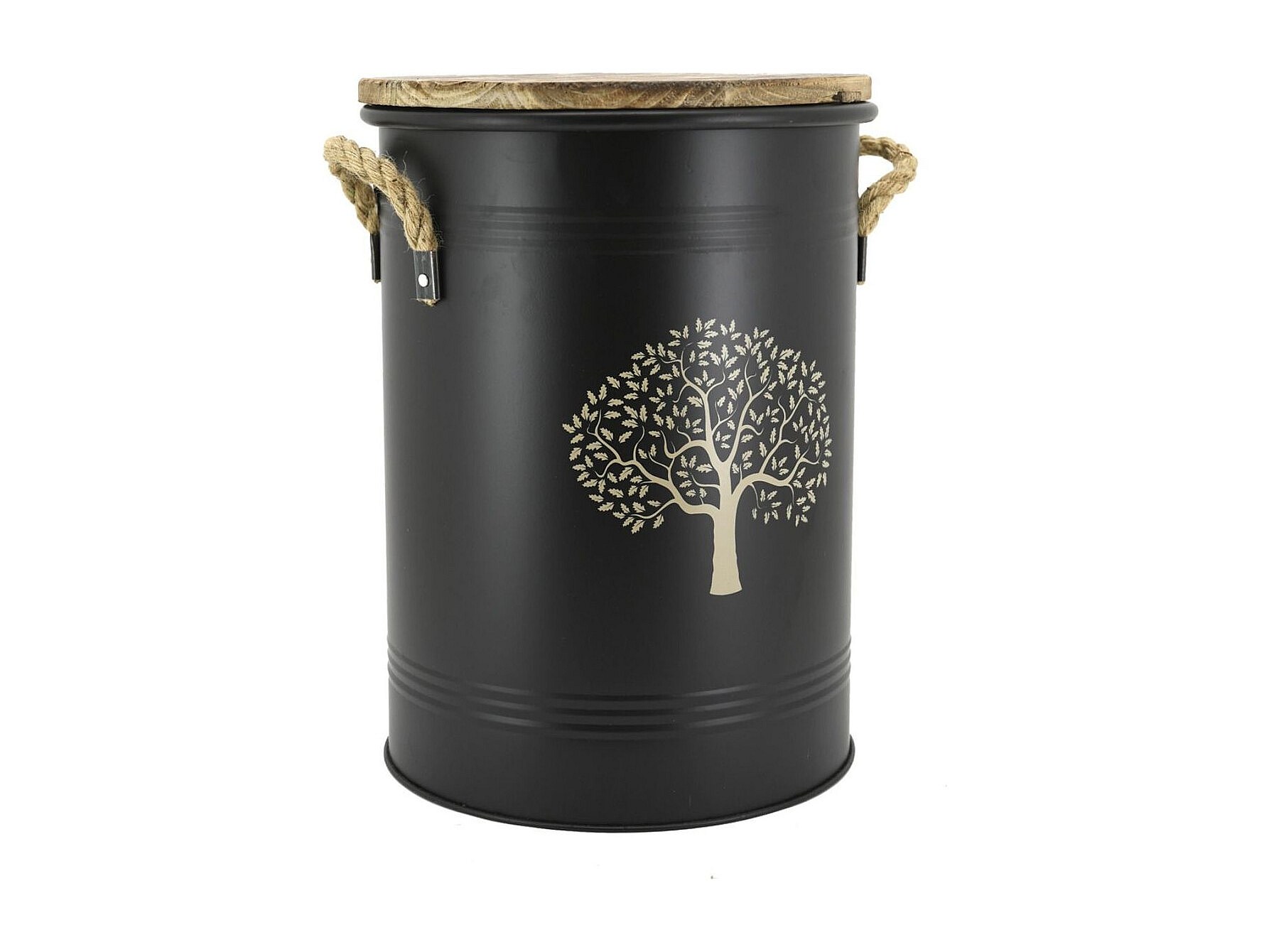 Tabouret et seau à pellets avec pelle Au coin du feu Métal laqué Arbre de vie