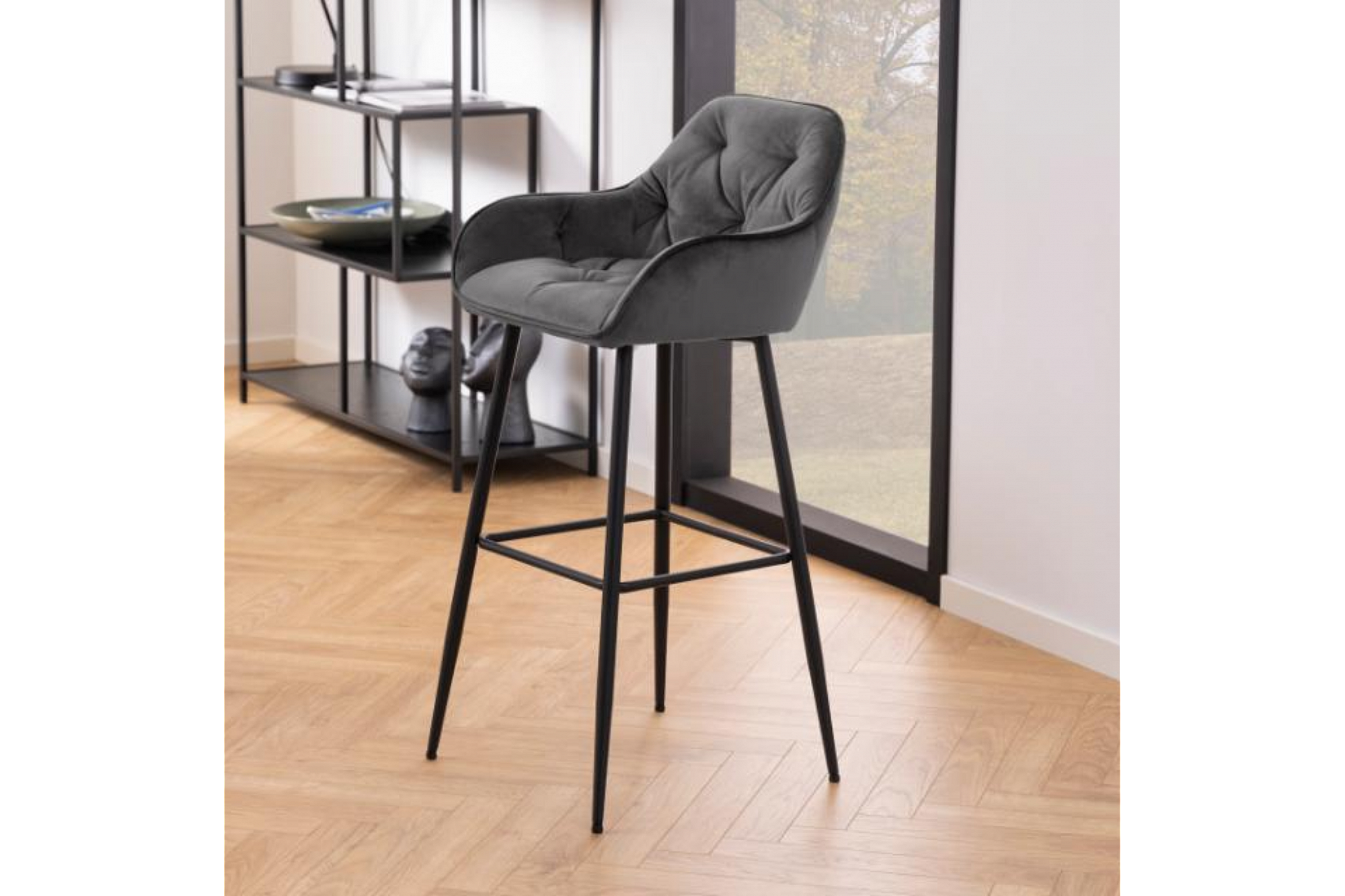 Tabouret haut avec accoudoirs en velours et métal (lot de 2) - TERI