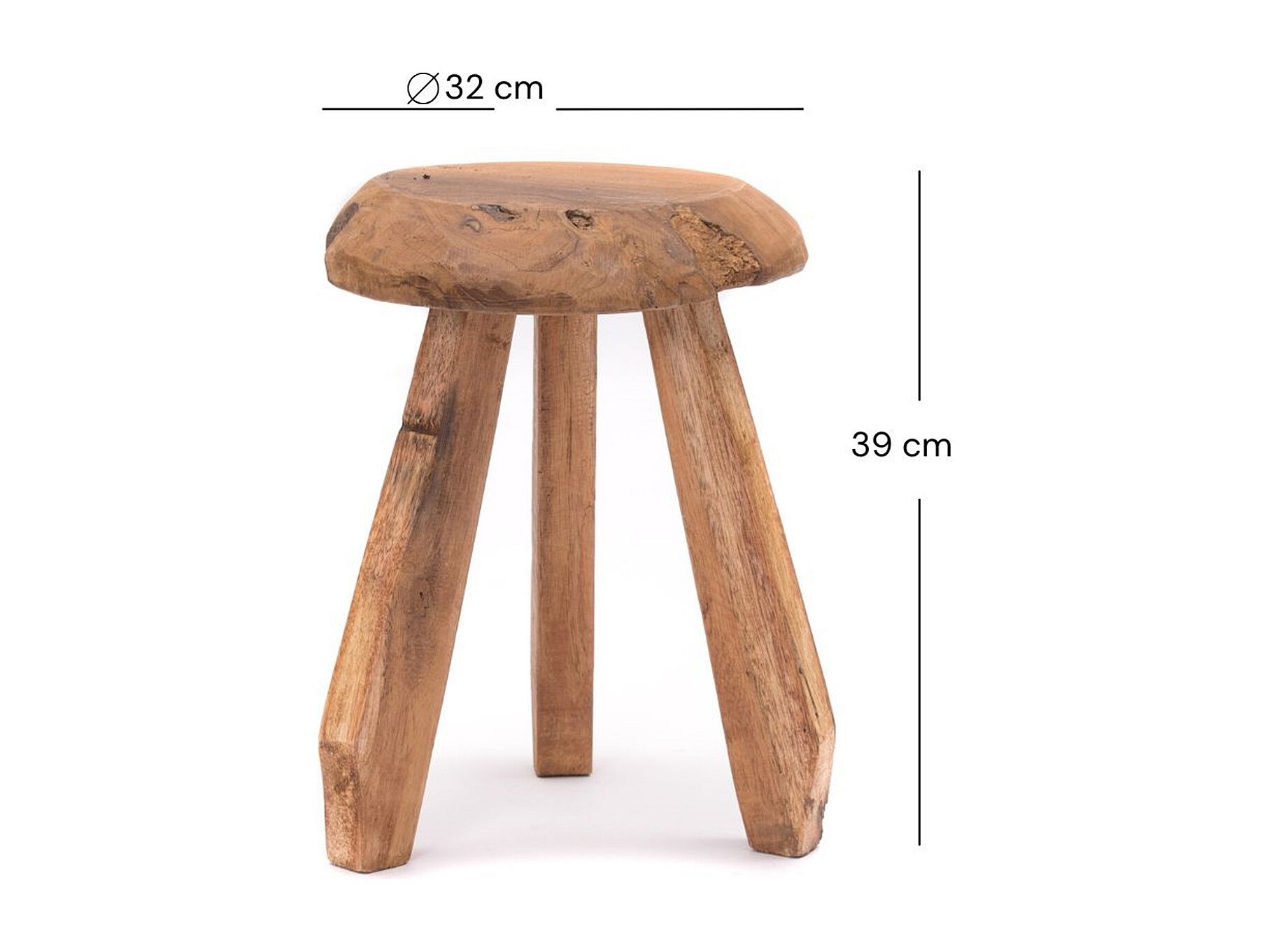 TABOURET Heidi Bois massif en acajou, rond couleurs naturelles