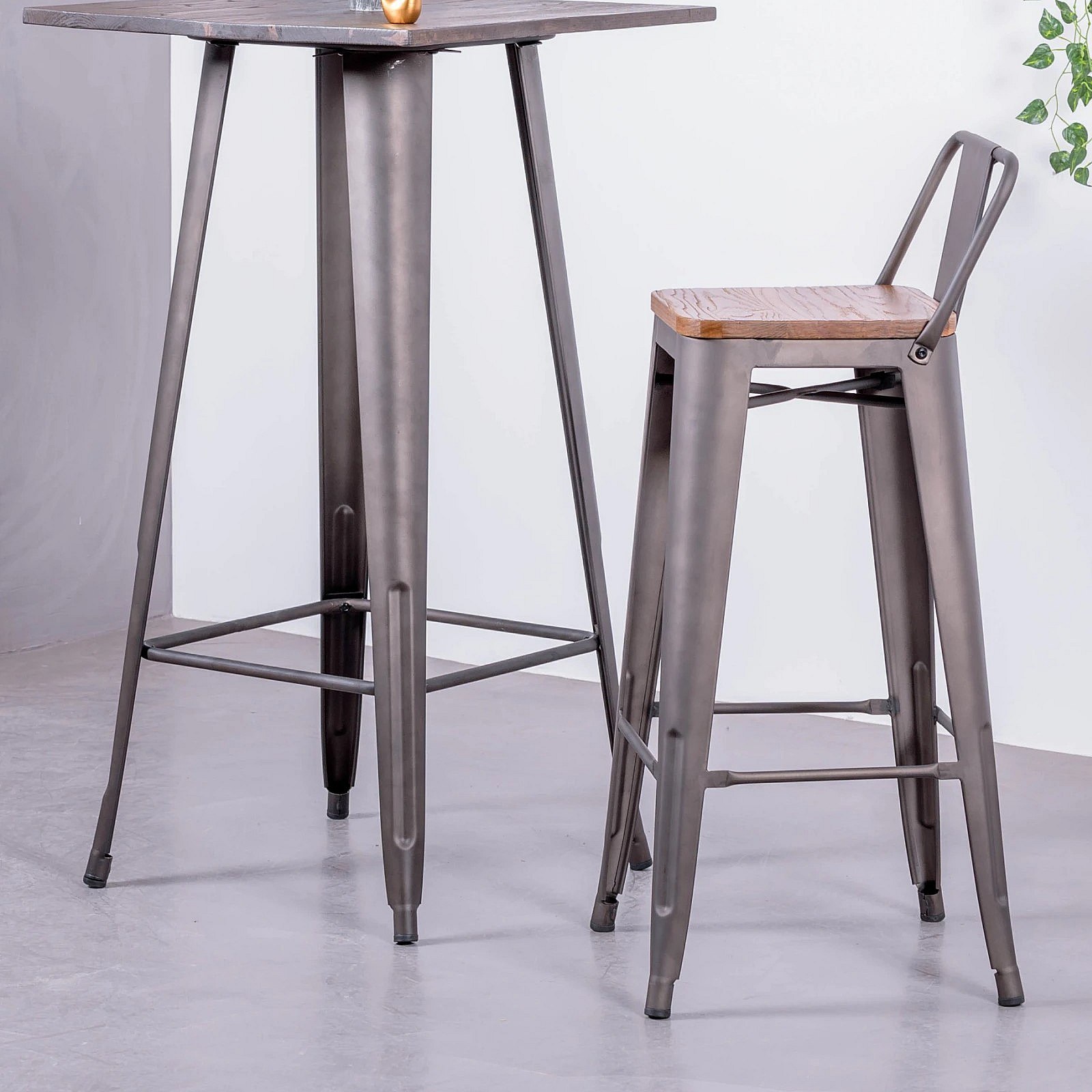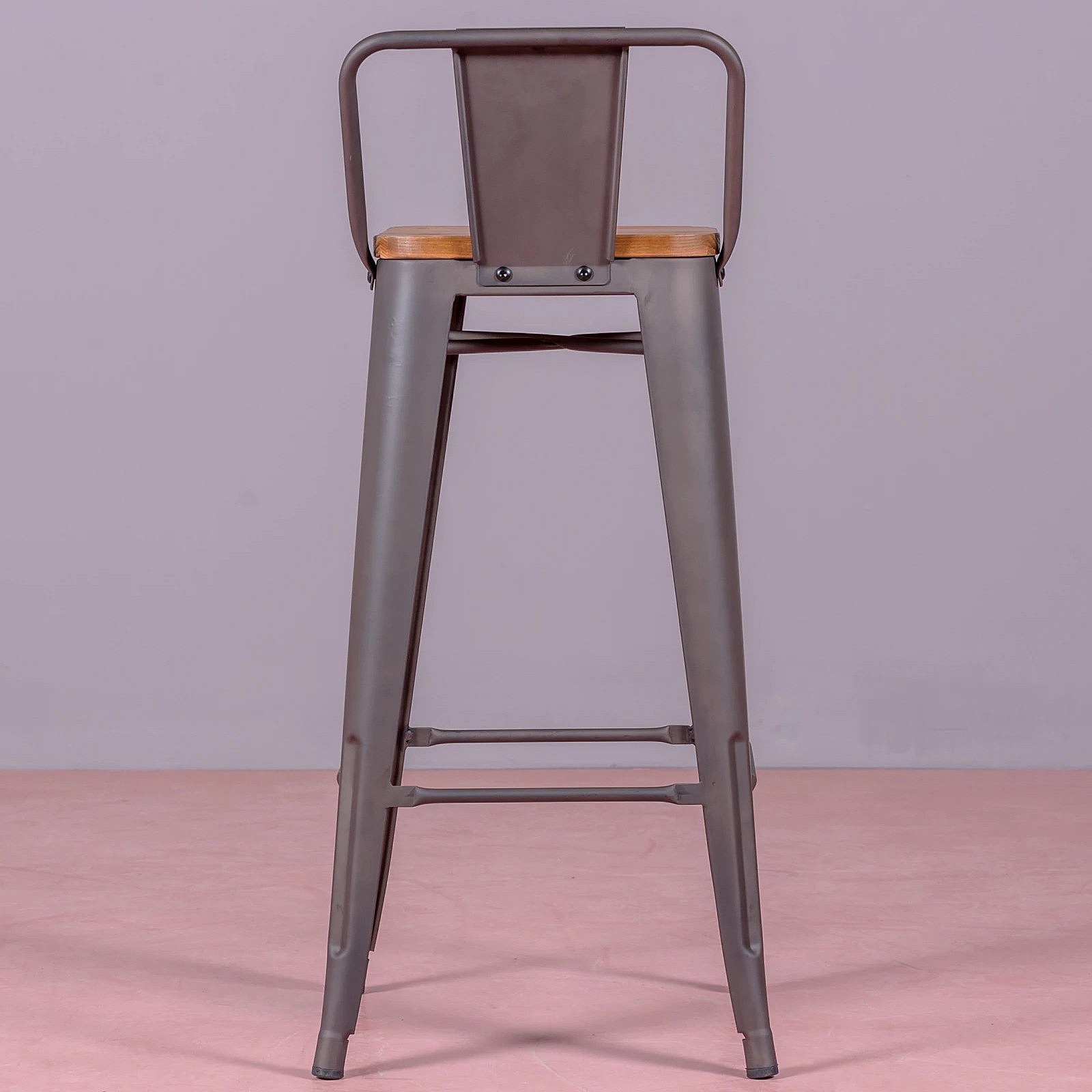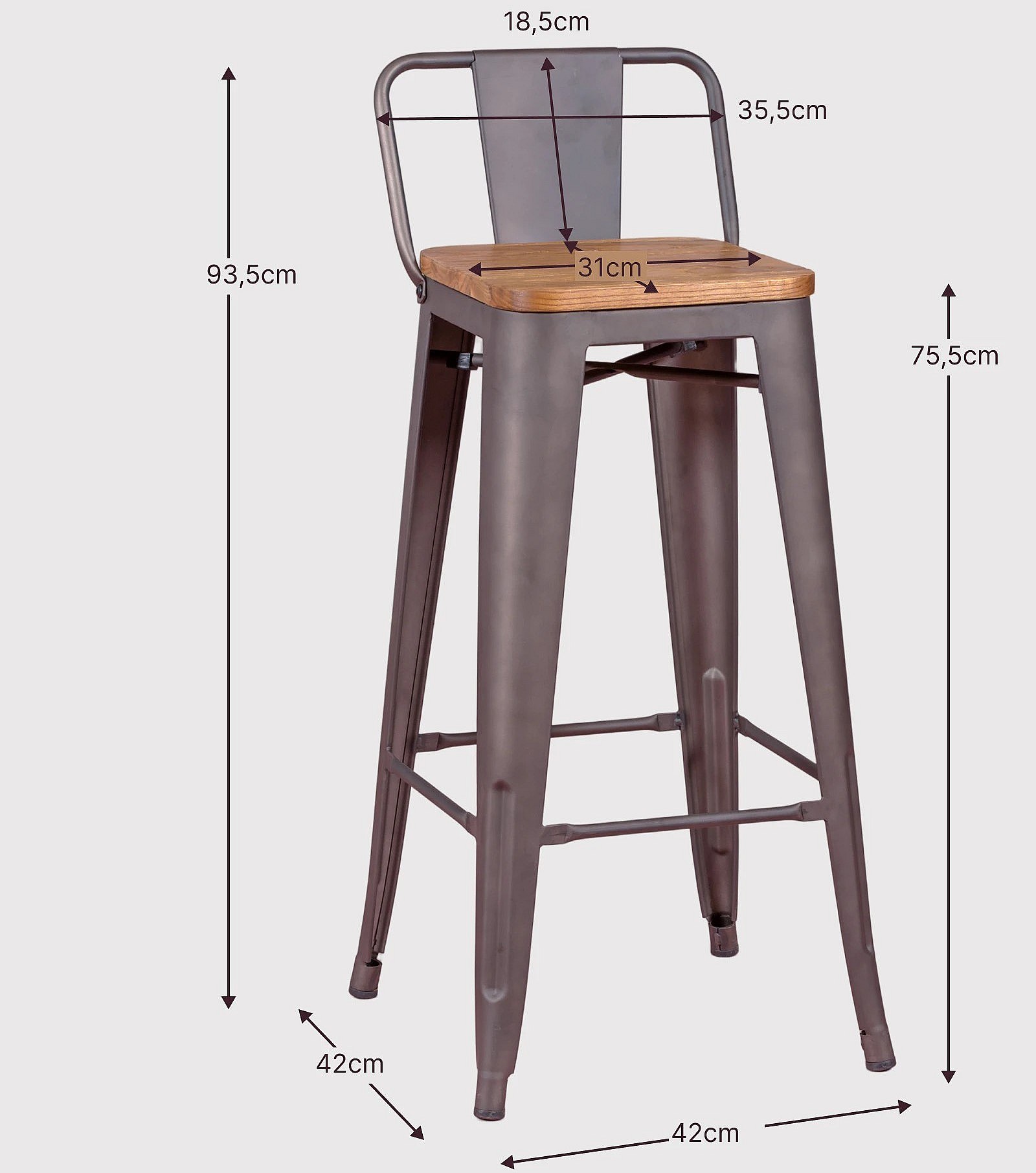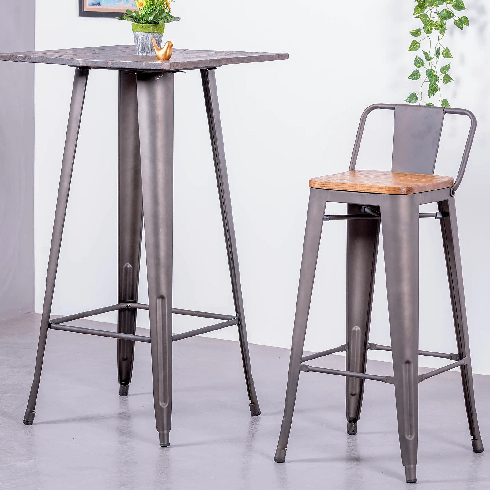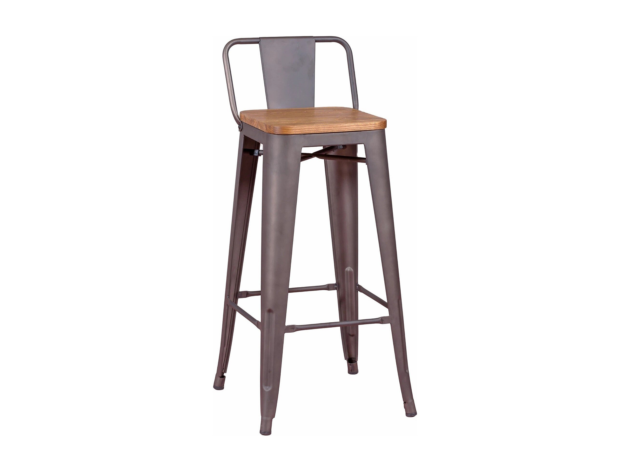 Tabouret industriel en acier vieilli avec dossier bas et assise en bois - Bistro - Antique