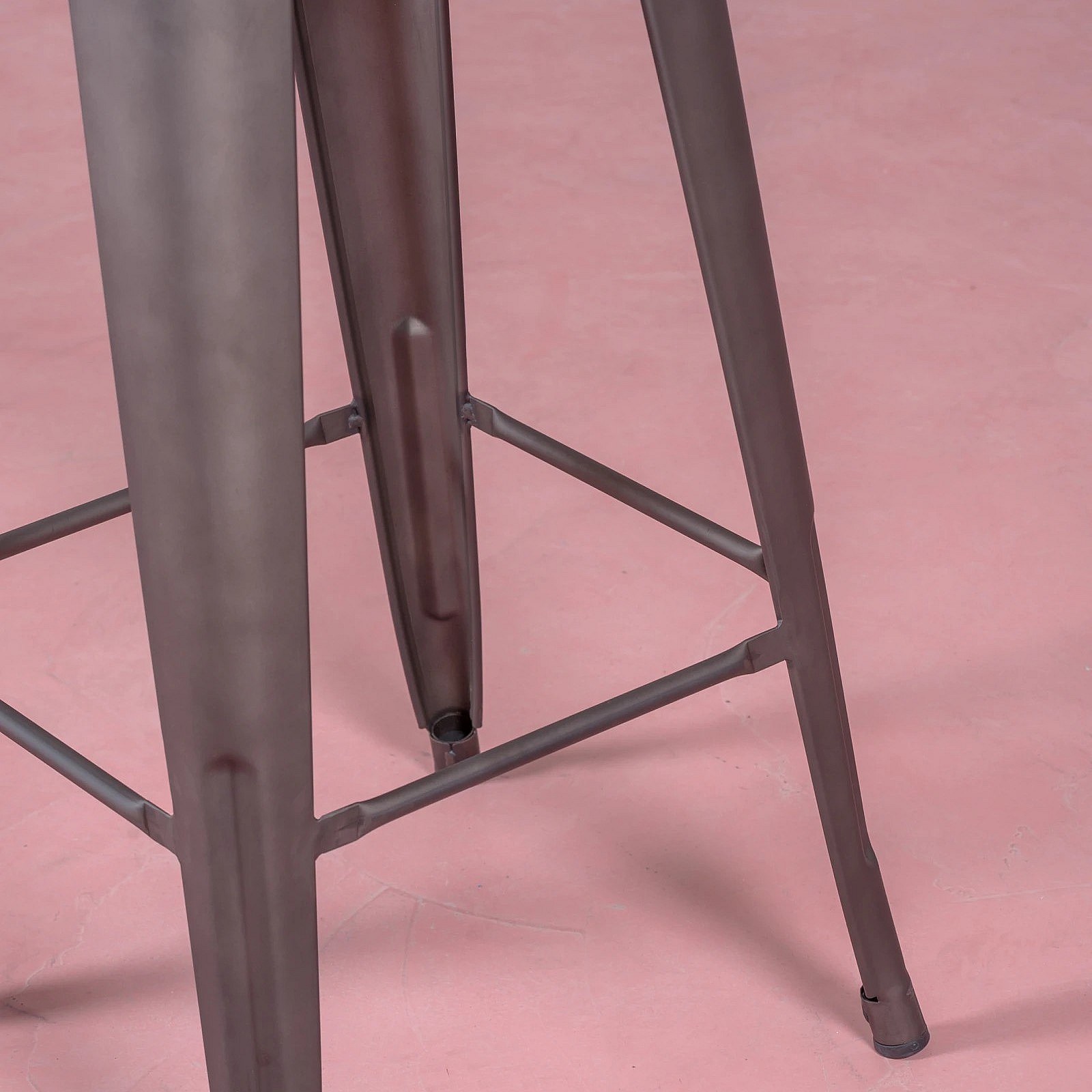 Lot de 4 tabourets de bar en métal brut aspect galvanisé style industriel - Avec dossier - Hauteur 76 cm
