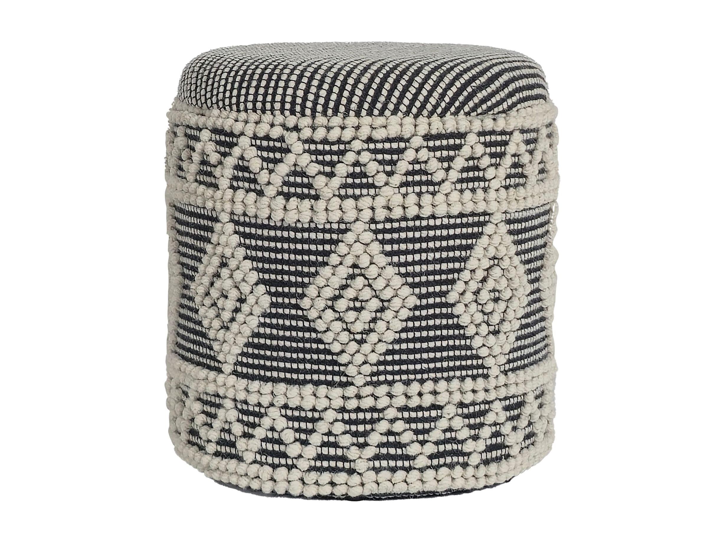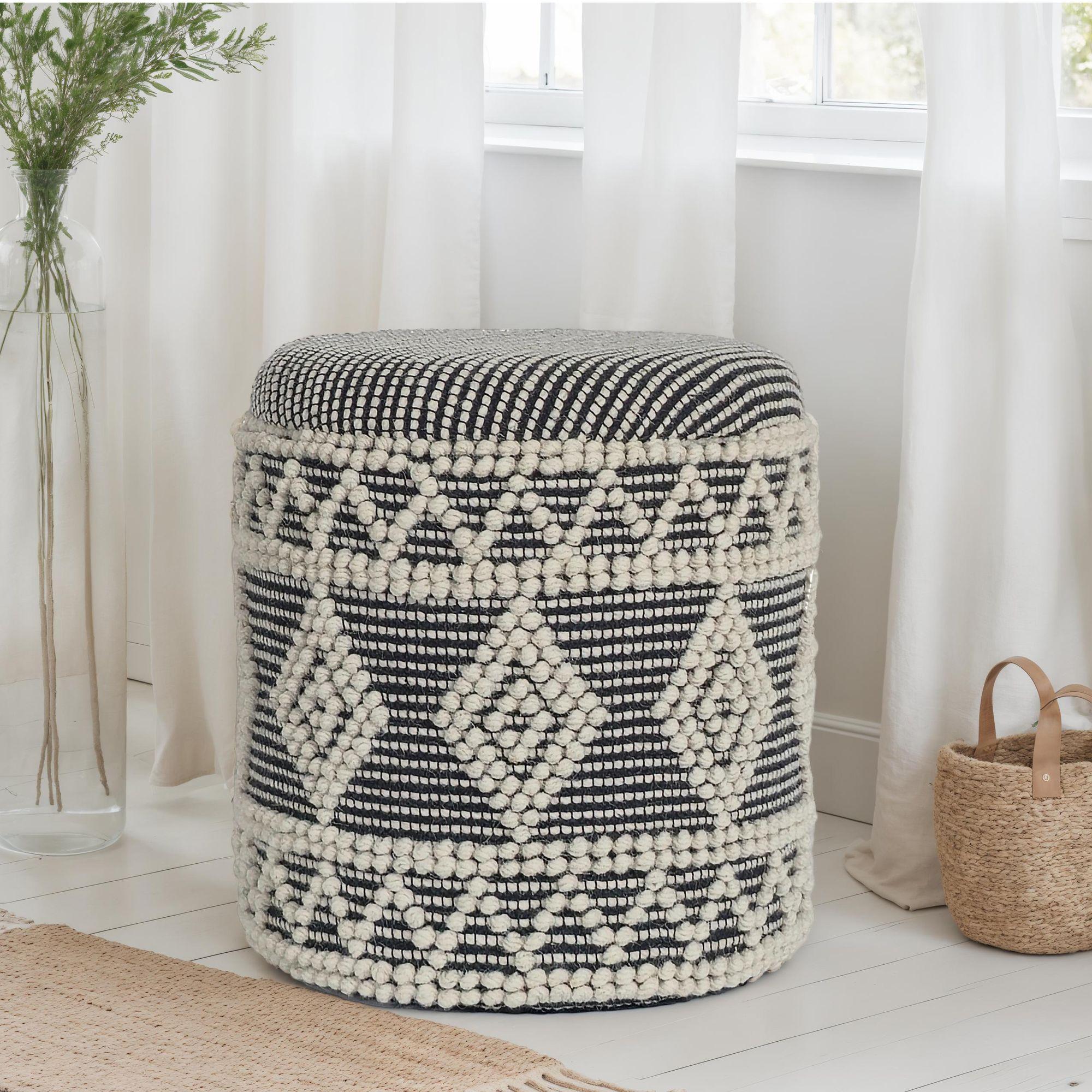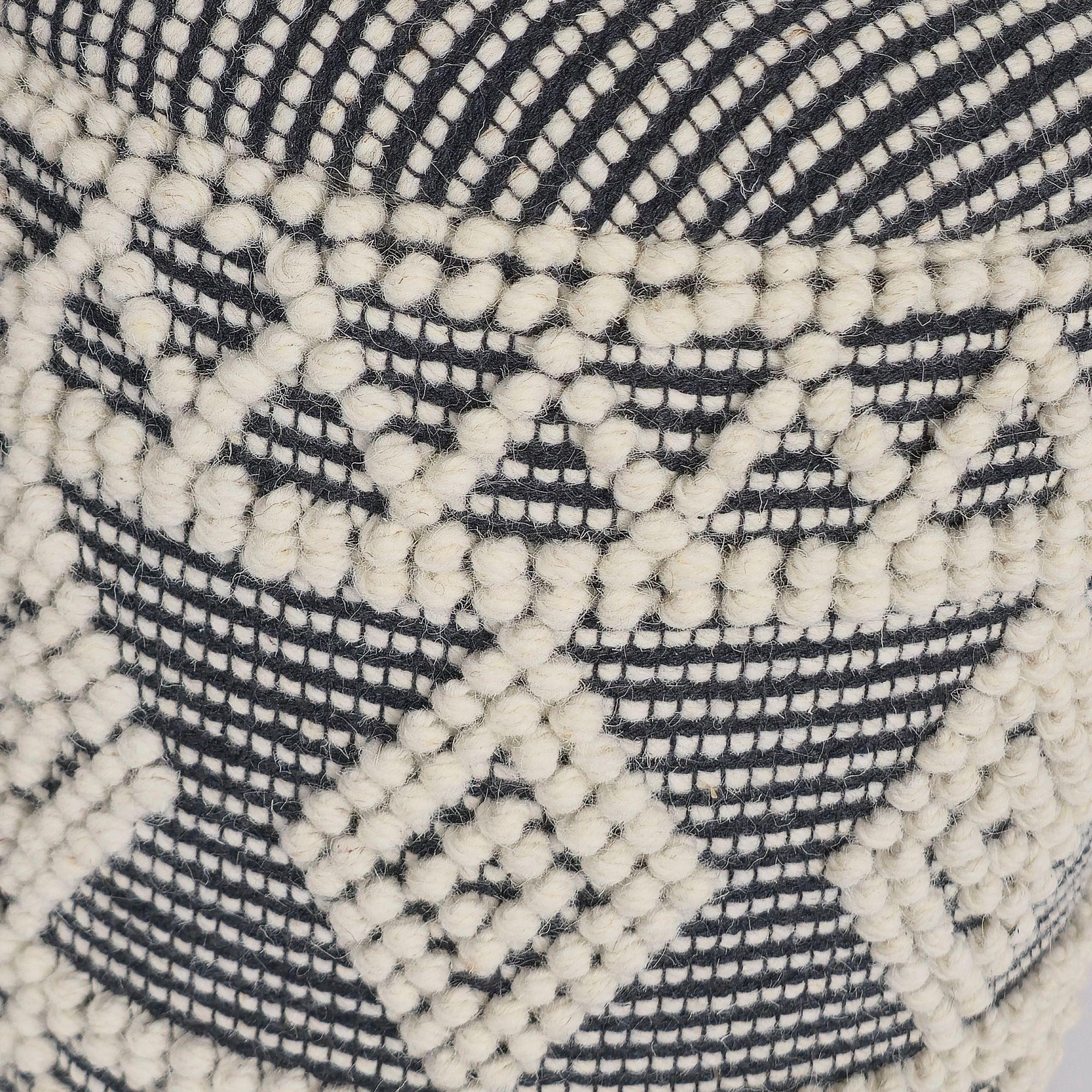 Tabouret Rangement Laine Gris Crème Rond Design Bohème pour Salon