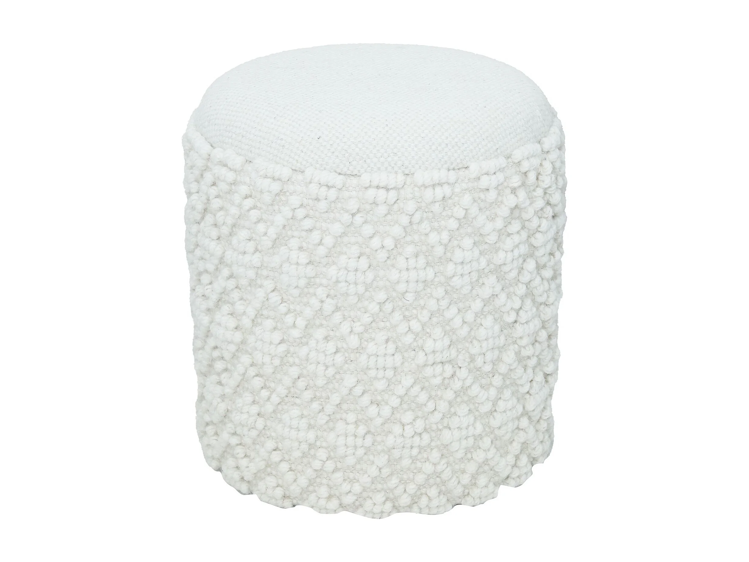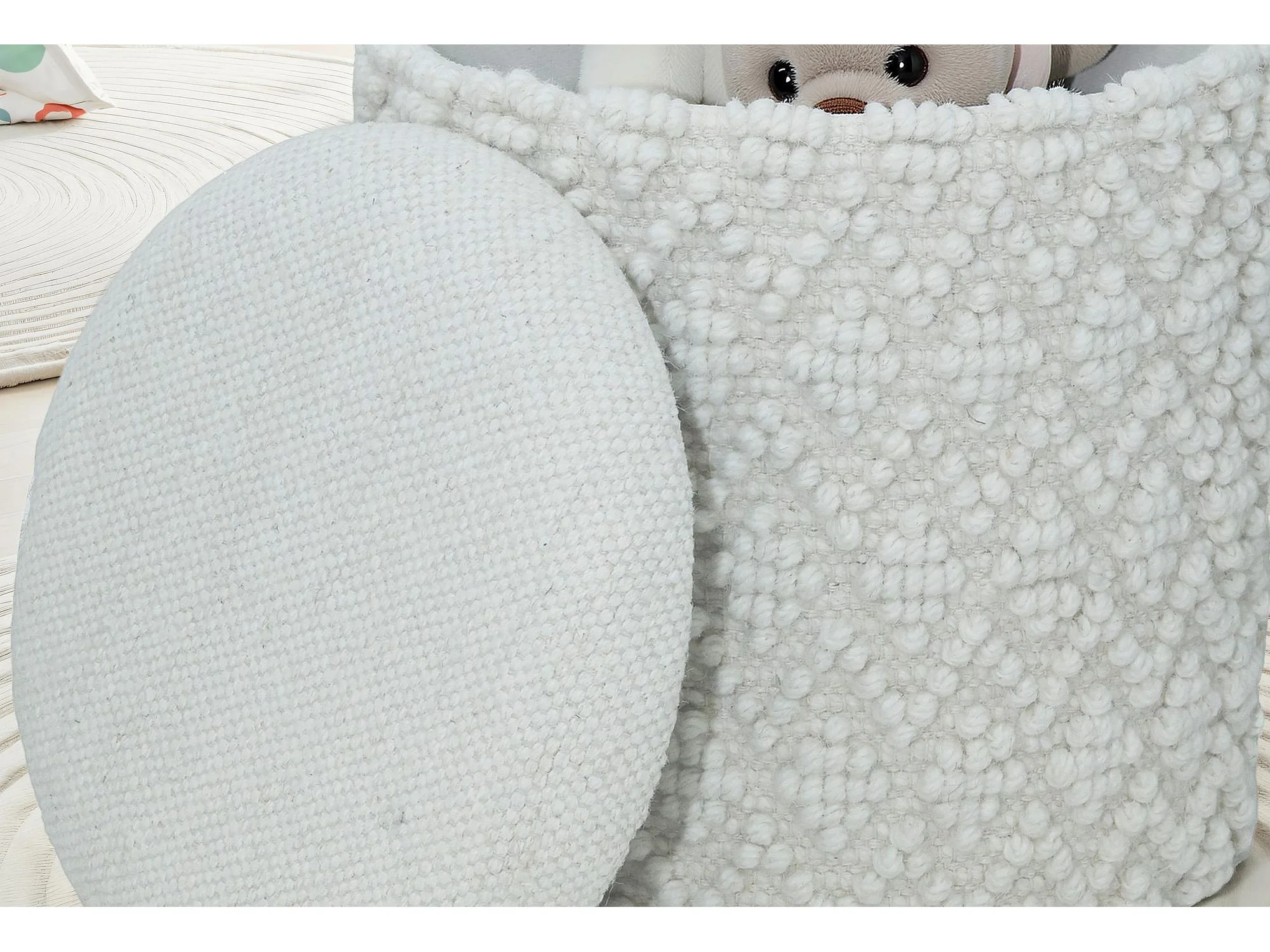 Tabouret Rond en Laine avec Rangement Blanc Assise Amovible Boho 45 cm