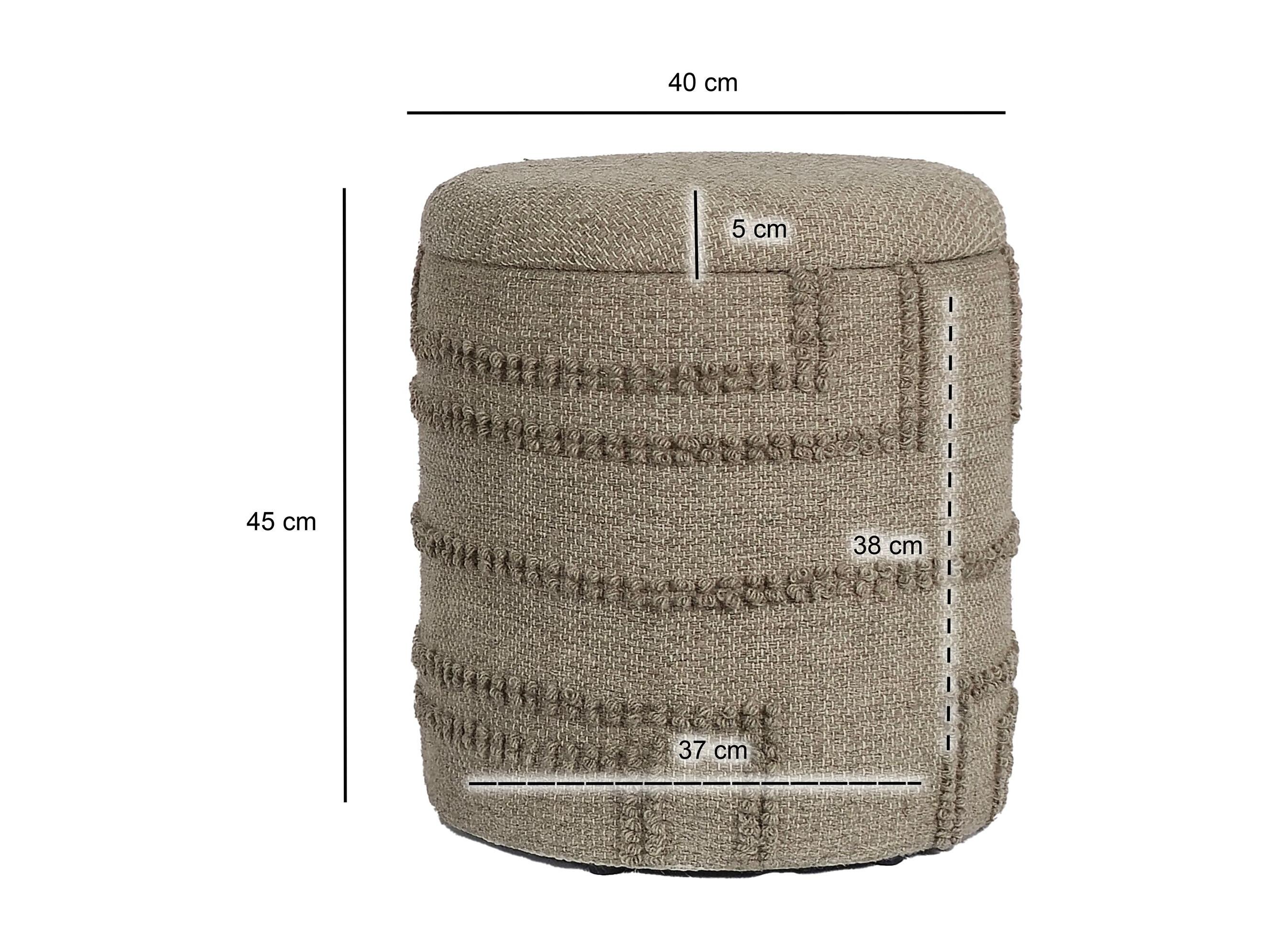 Tabouret Rond Laine Marron avec Rangement Couvercle Amovible Bohème